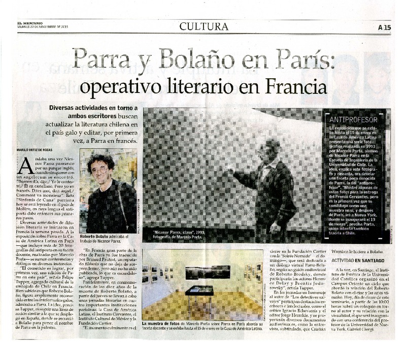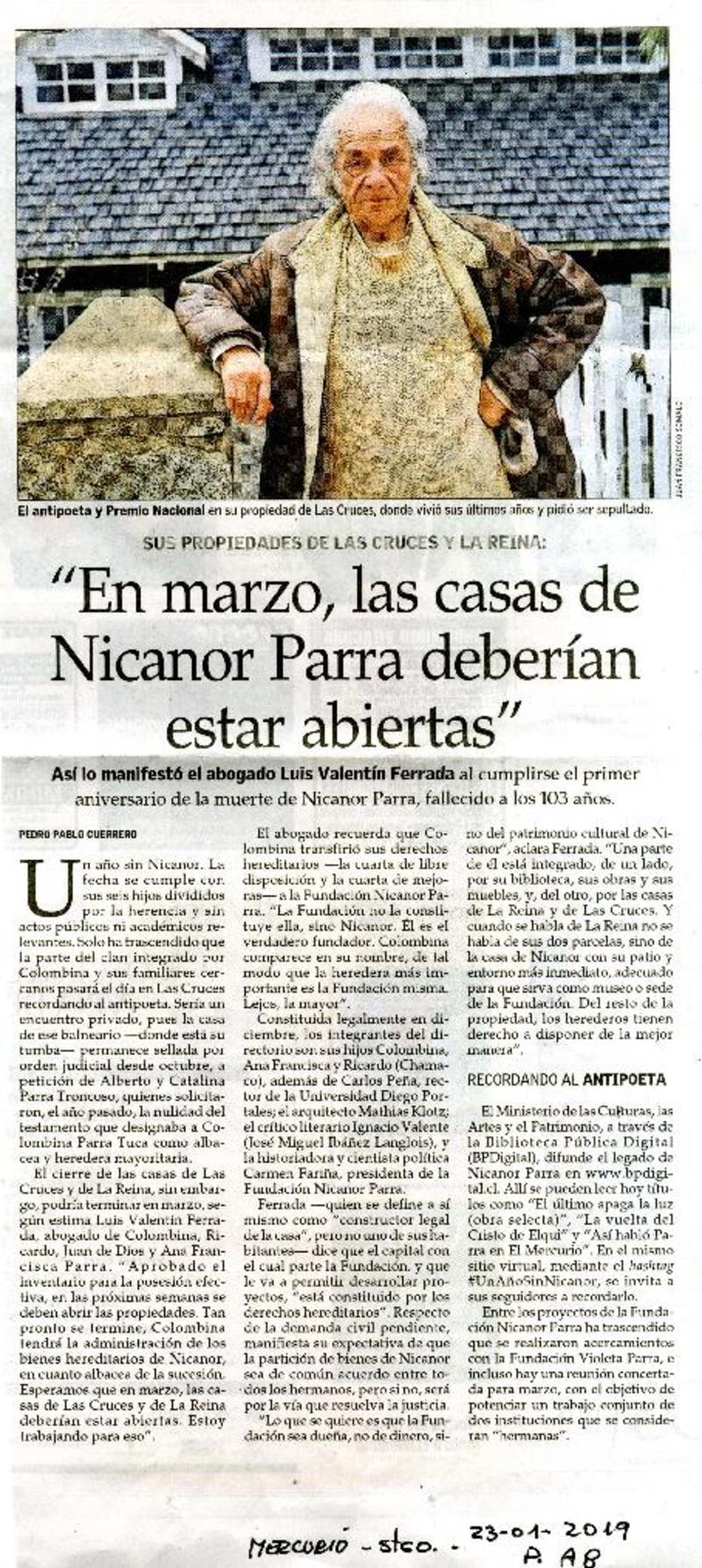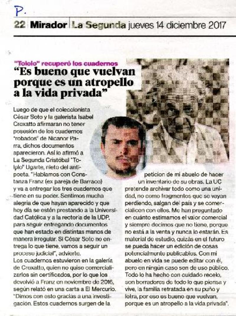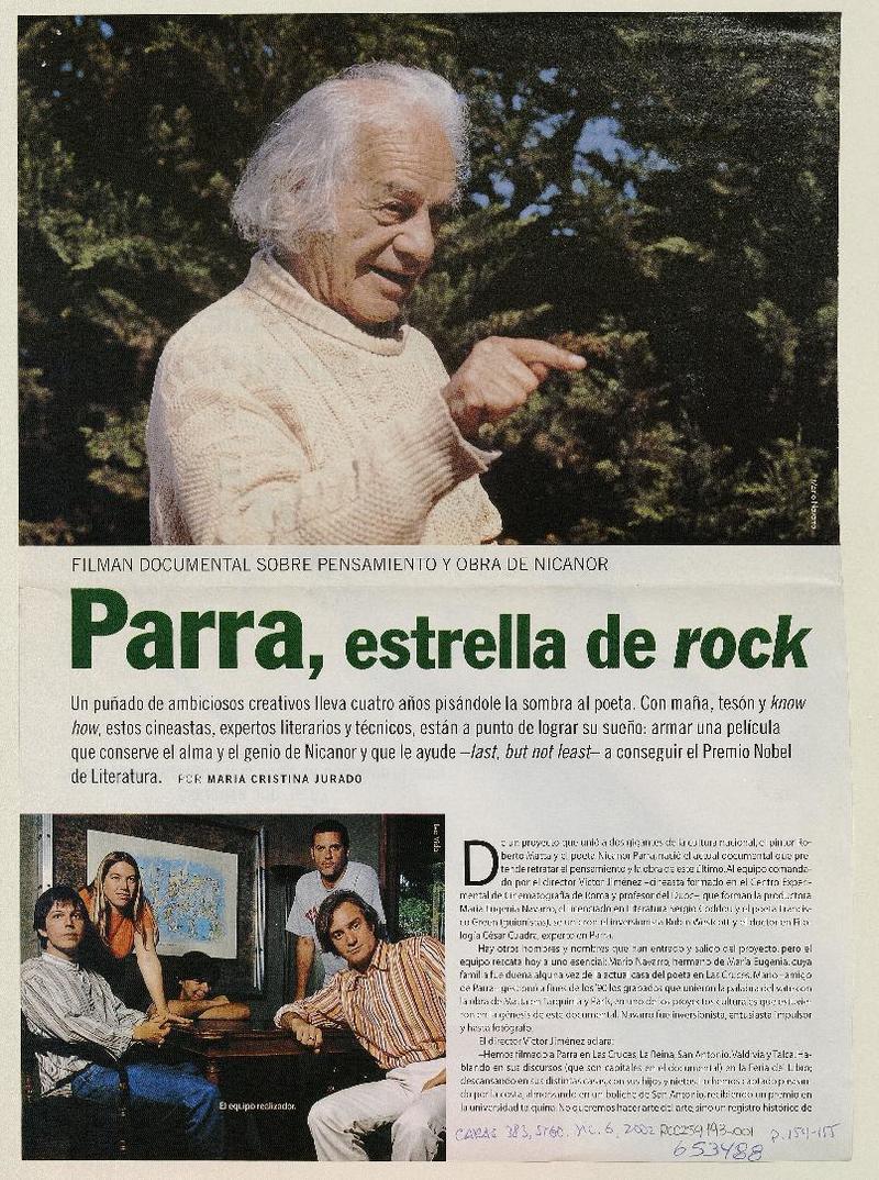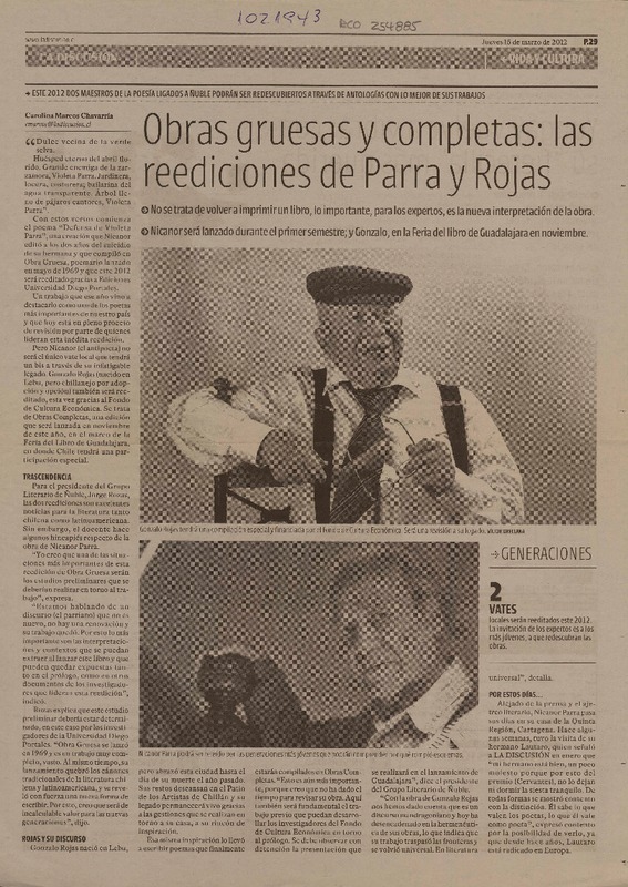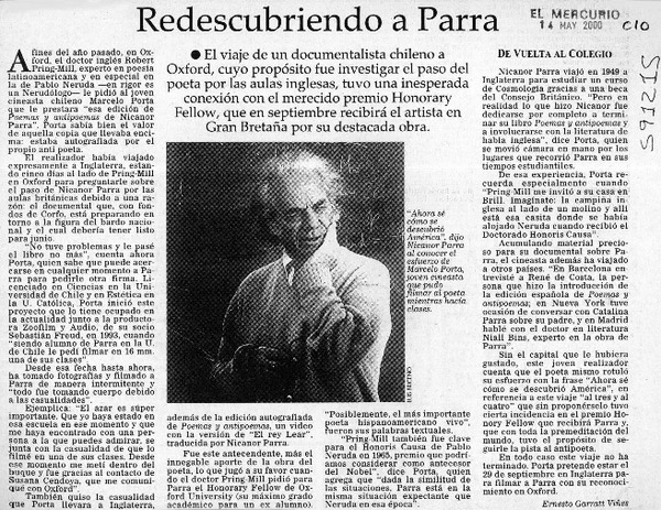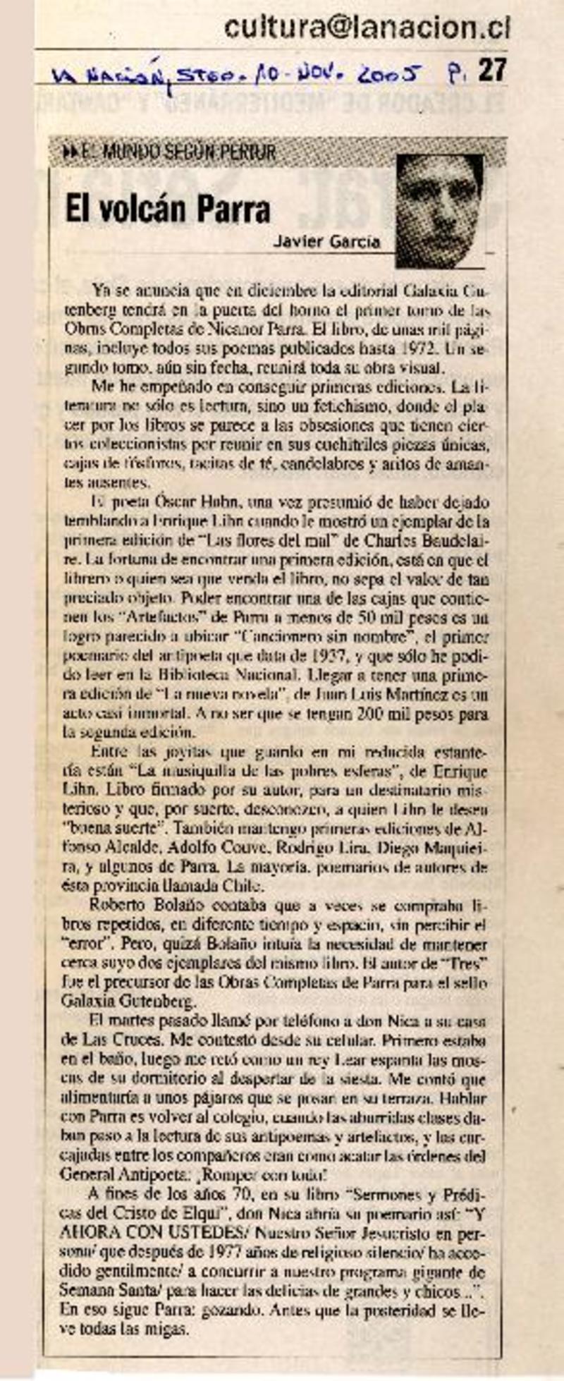 Amigo de Nicanor Parra relata sus lazos narrativos por 14 años [artículo] Catalina Garcés Rondanelli.