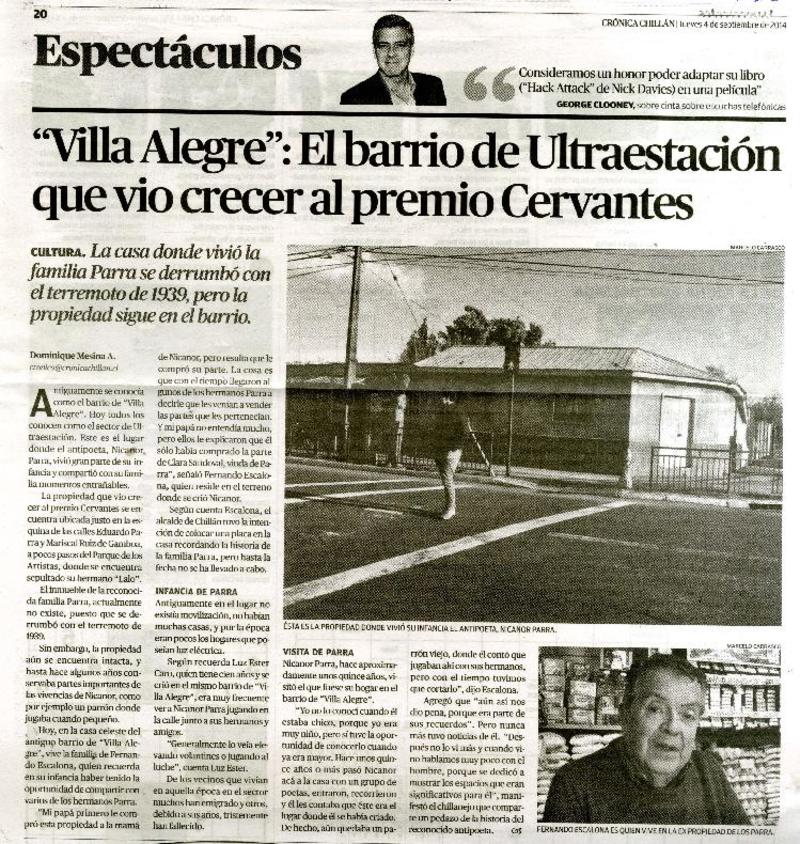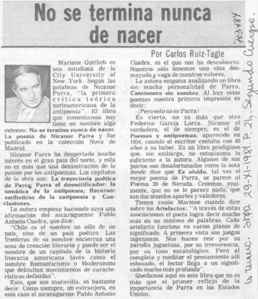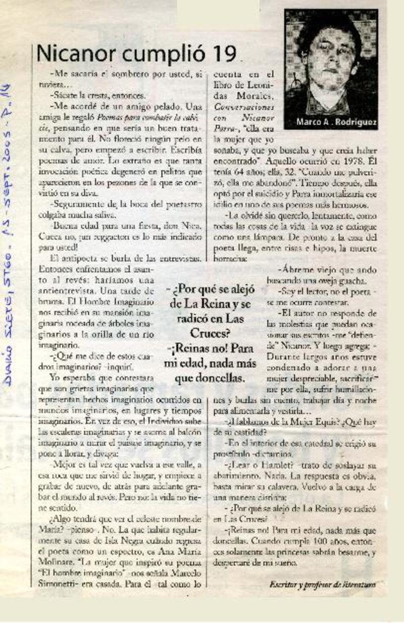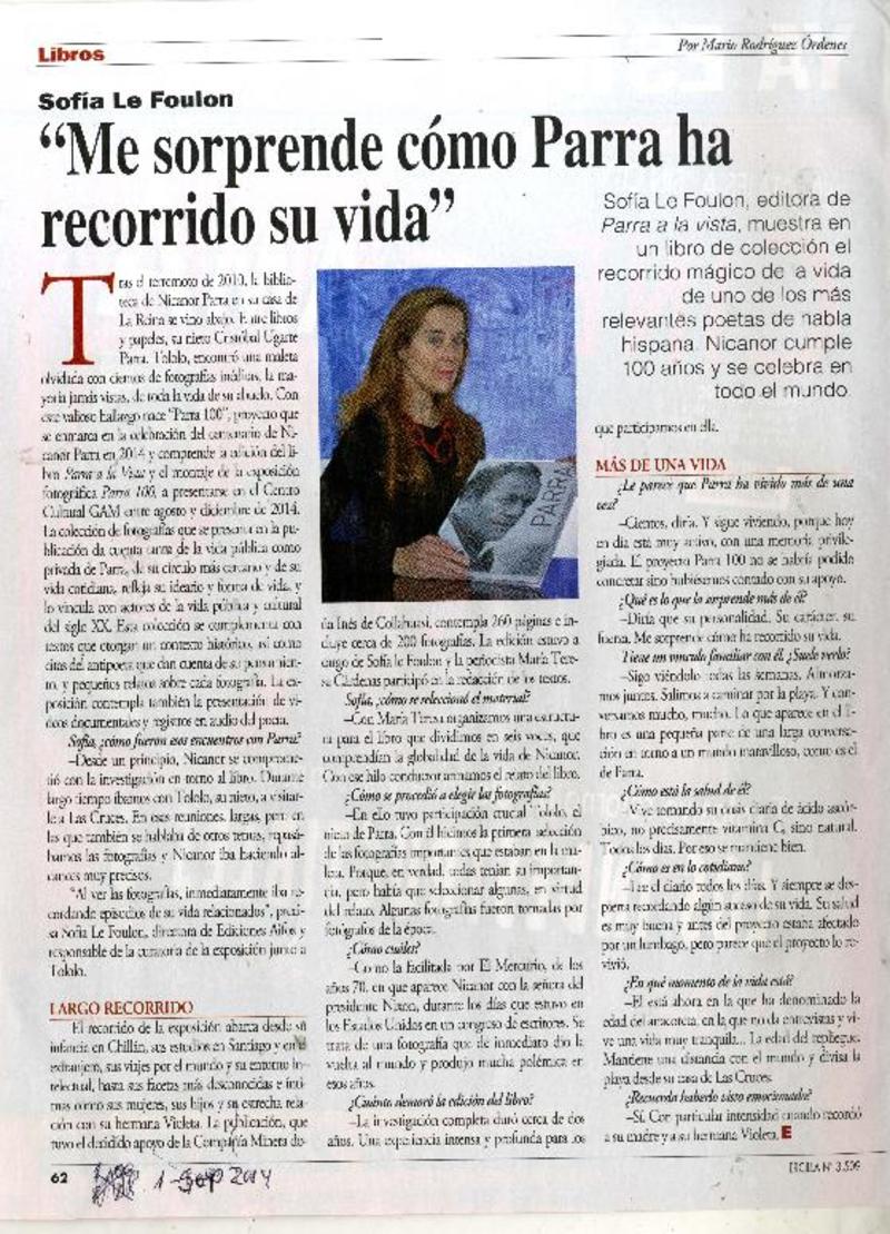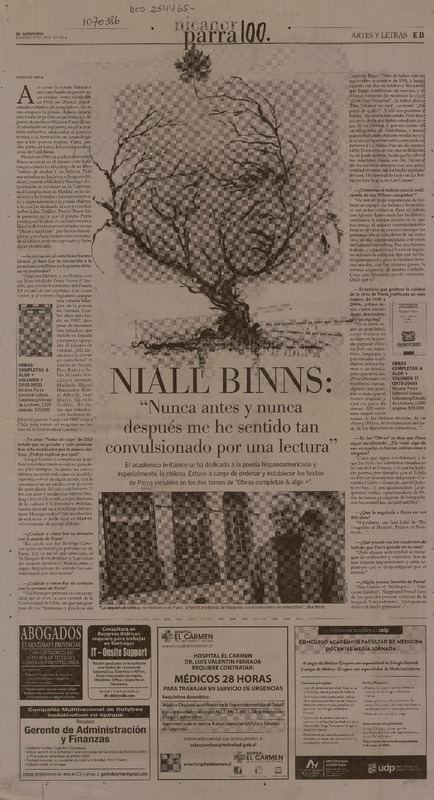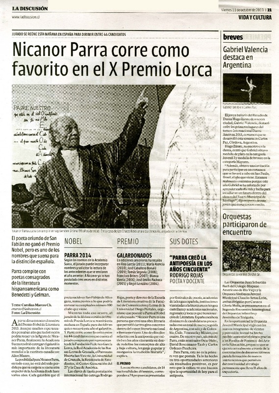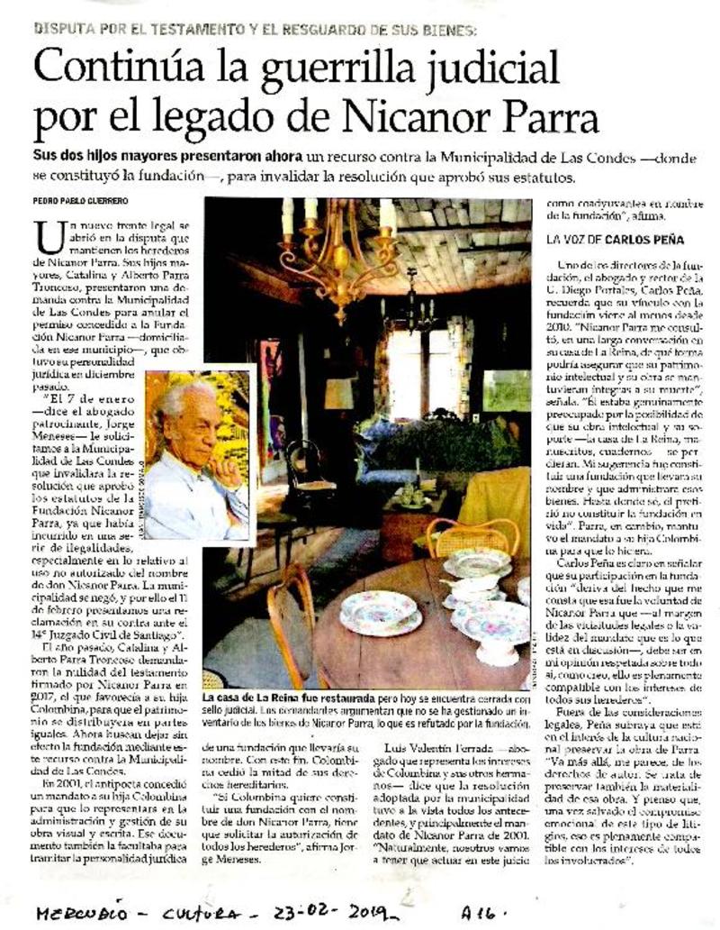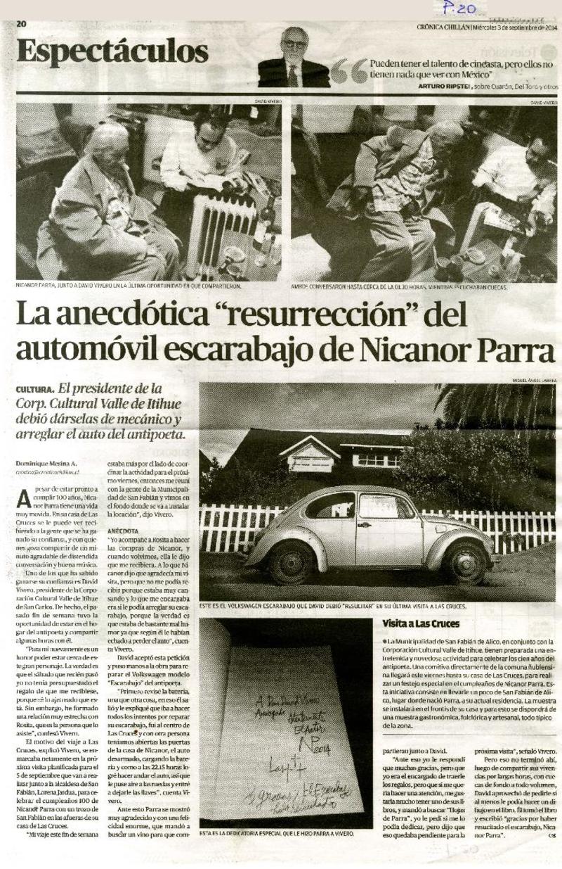 Amigo de Nicanor Parra relata sus lazos narrativos por 14 años [artículo] Catalina Garcés Rondanelli.
