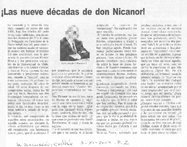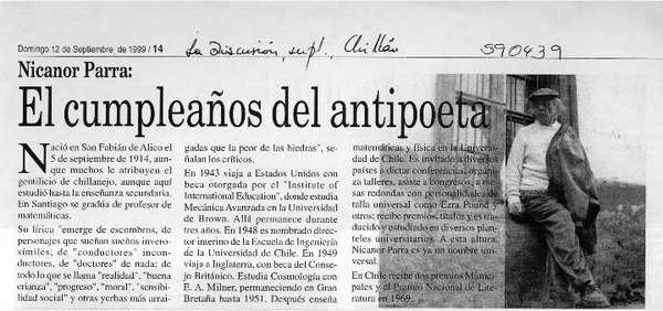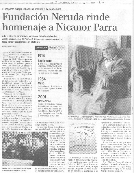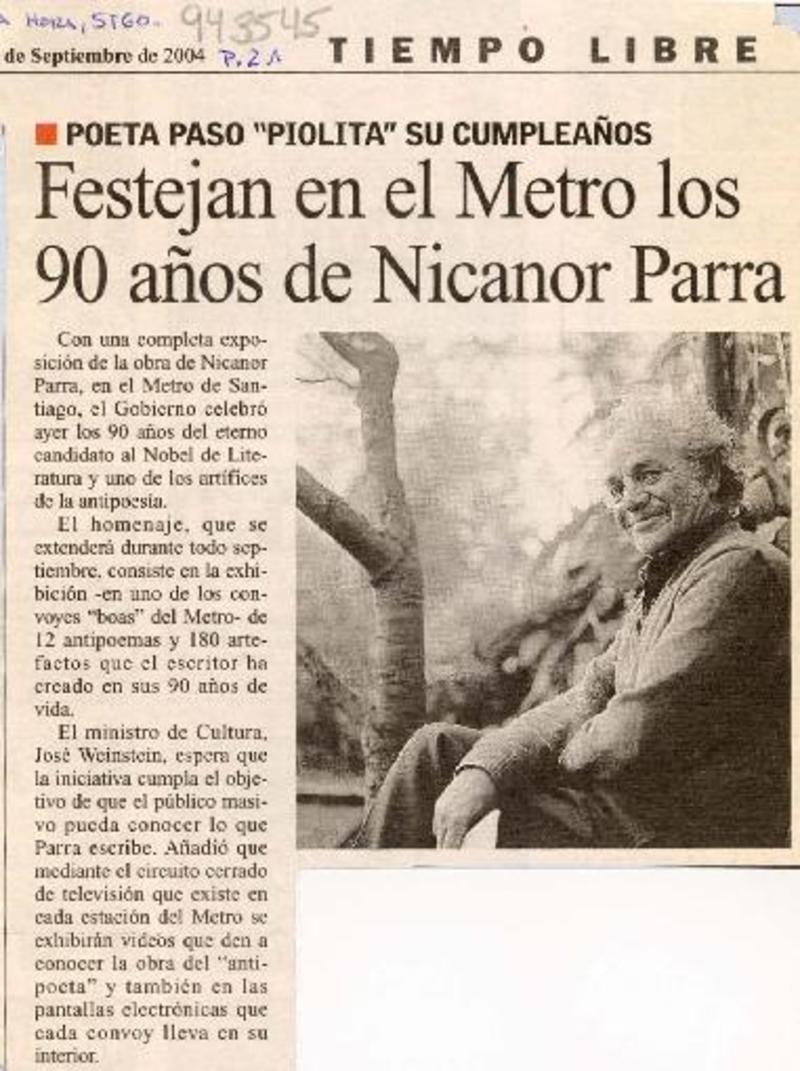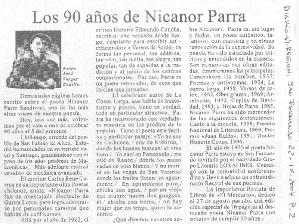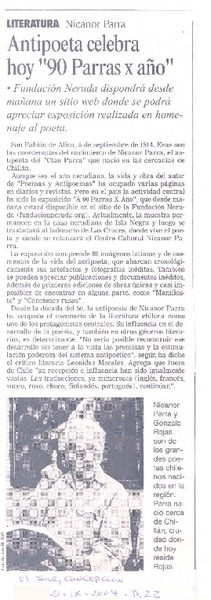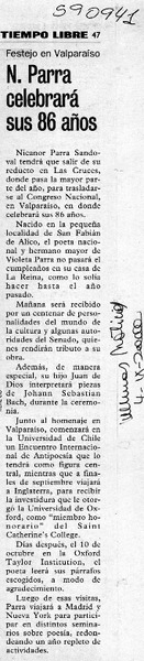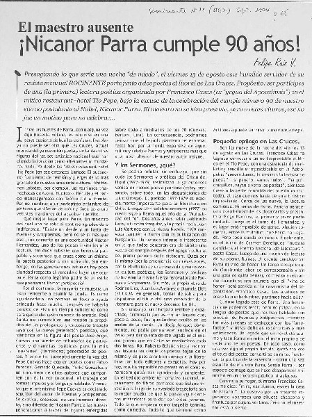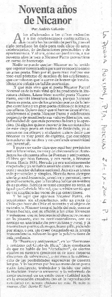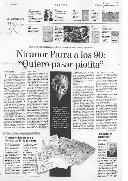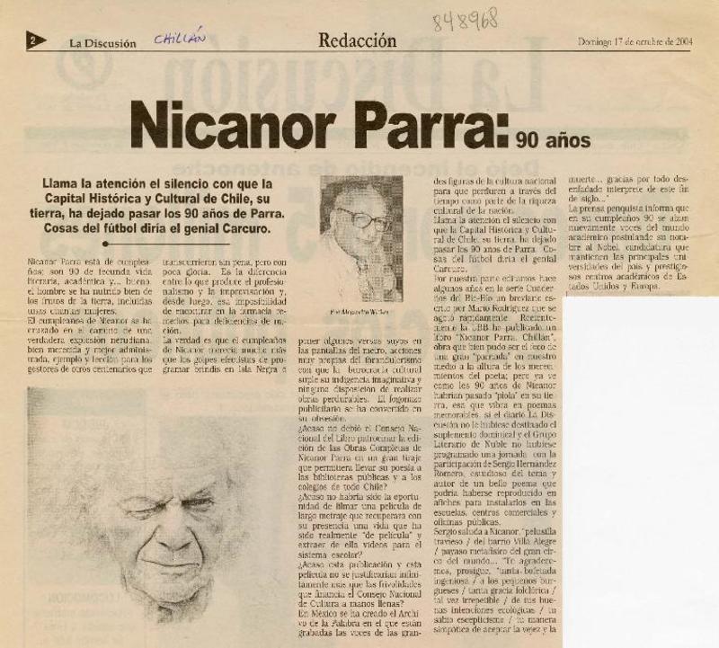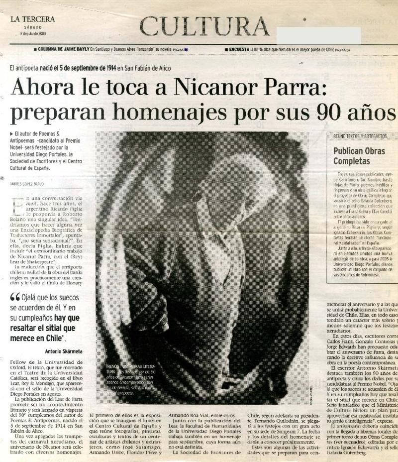 Ahora le toca a Nicanor Parra, preparan homenajes por sus 90 años [artículo] Andrés Gómez Bravo.