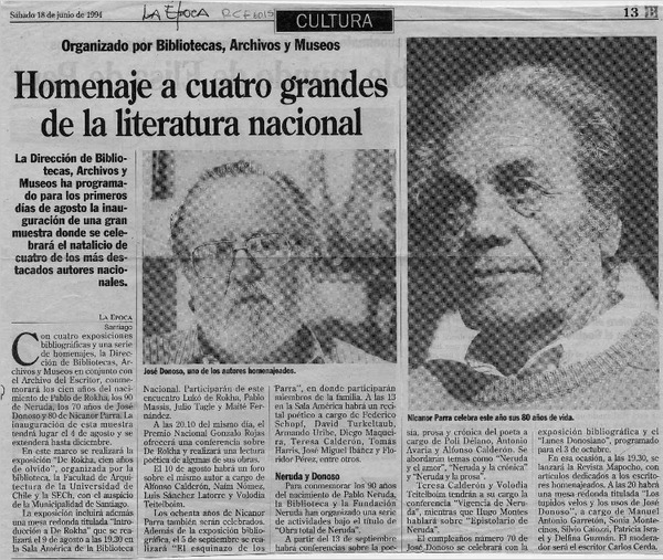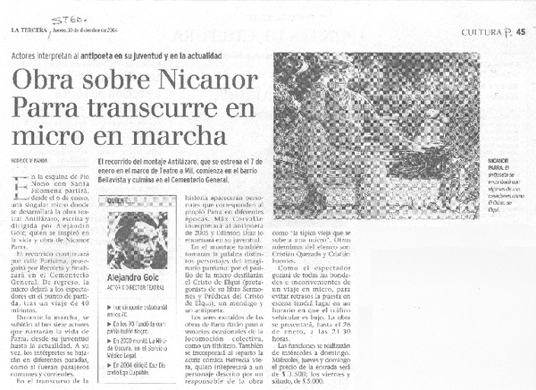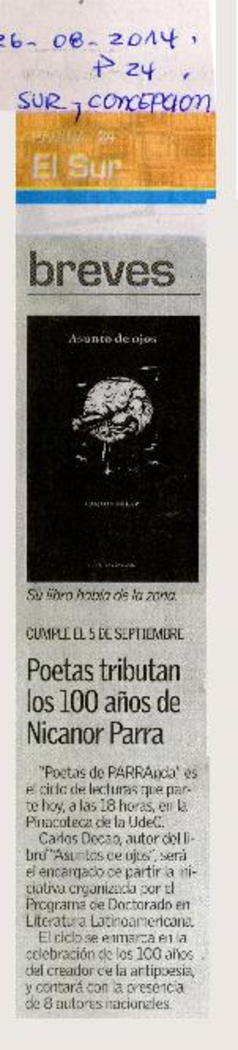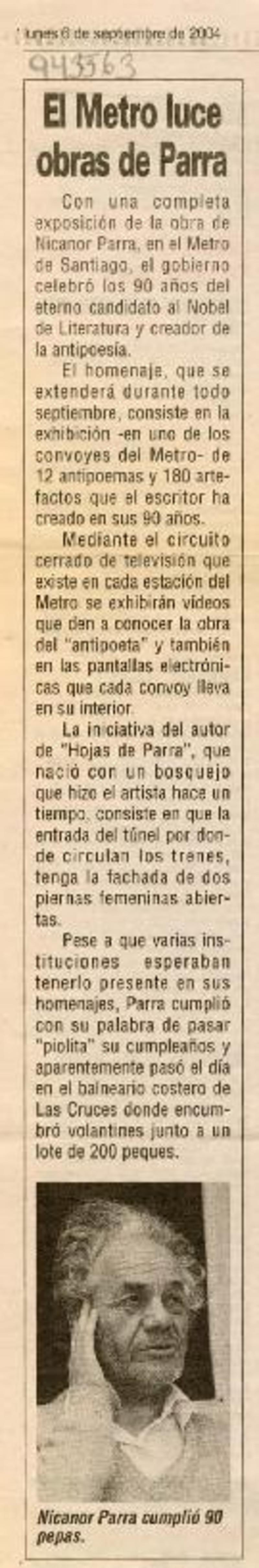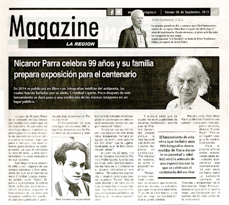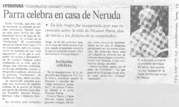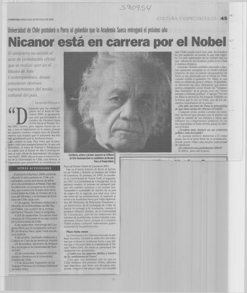 Ahora le toca a Nicanor Parra, preparan homenajes por sus 90 años [artículo] Andrés Gómez Bravo.