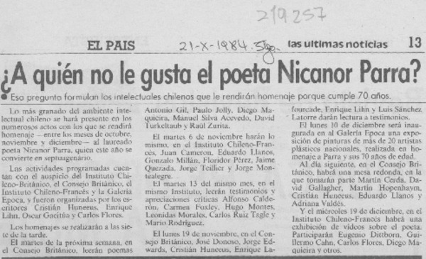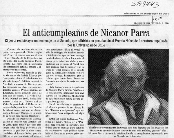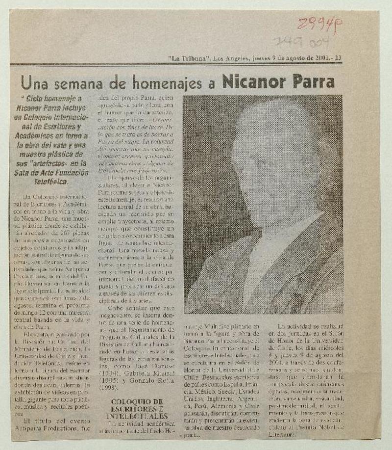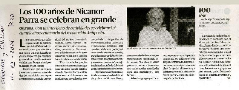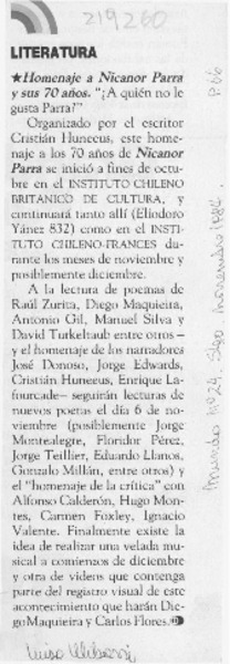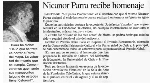 Una semana de homenajes a Nicanor Parra. [artículo]
