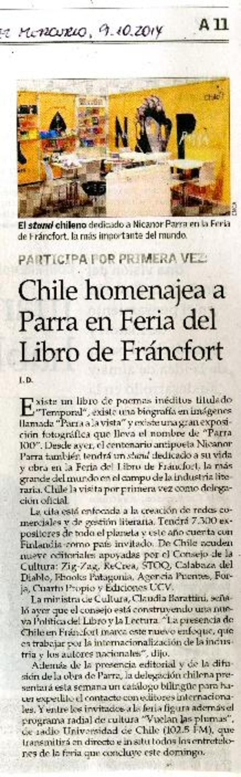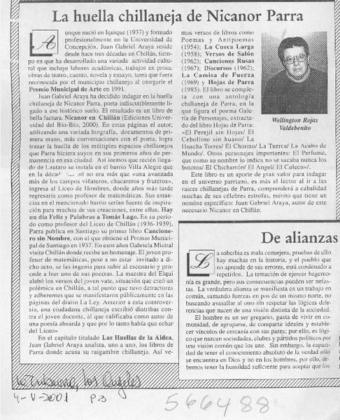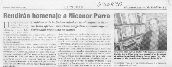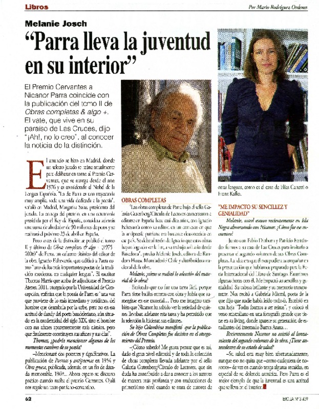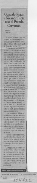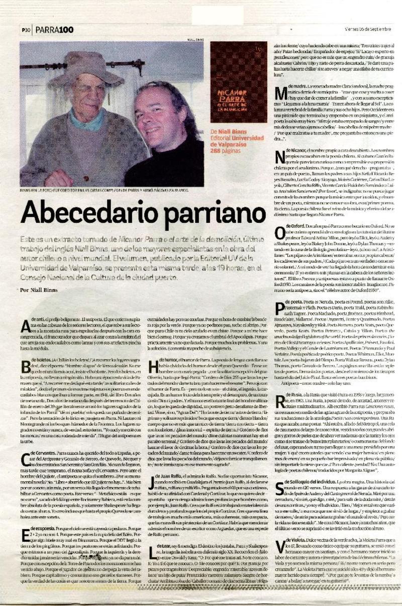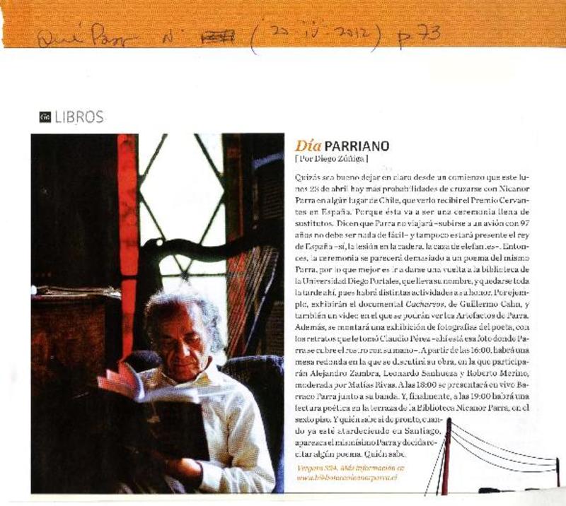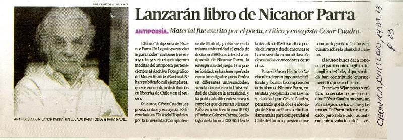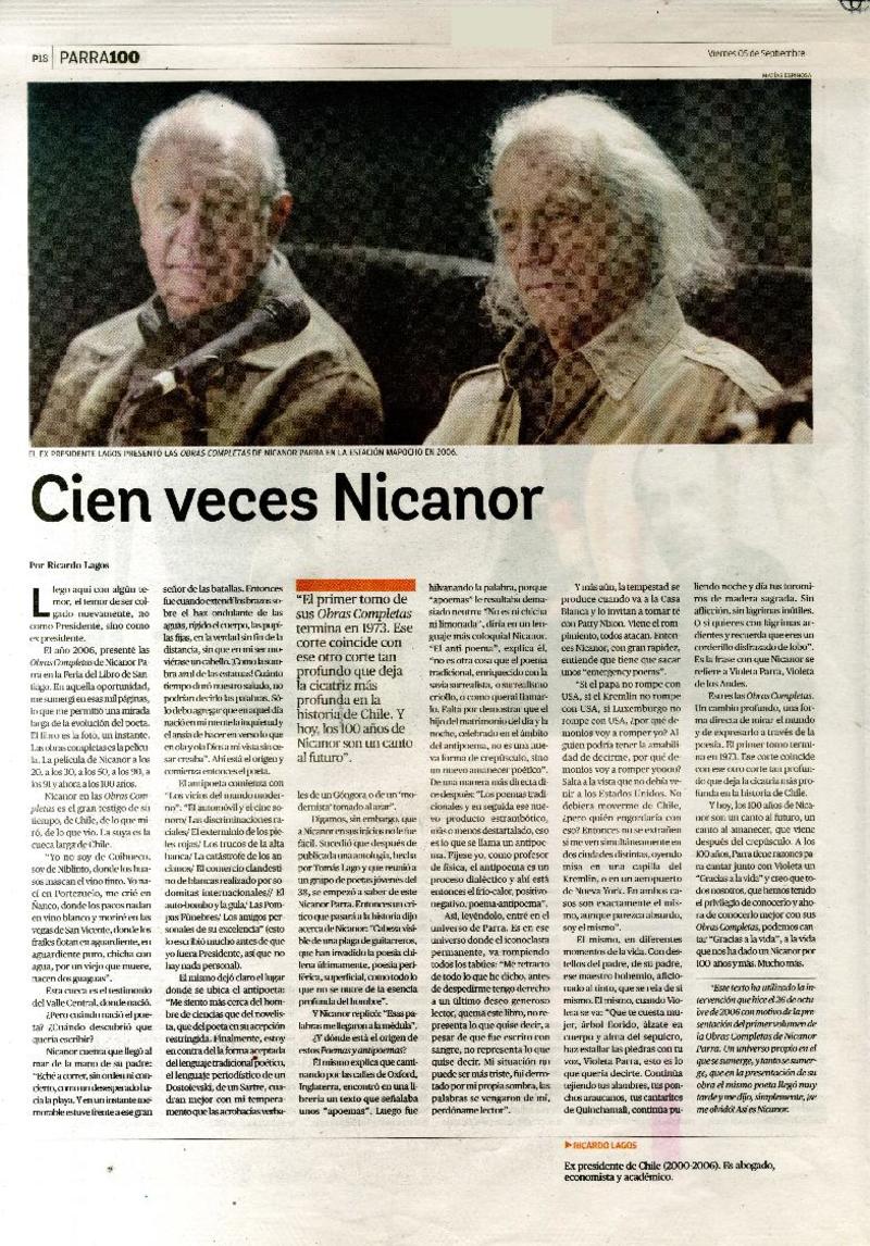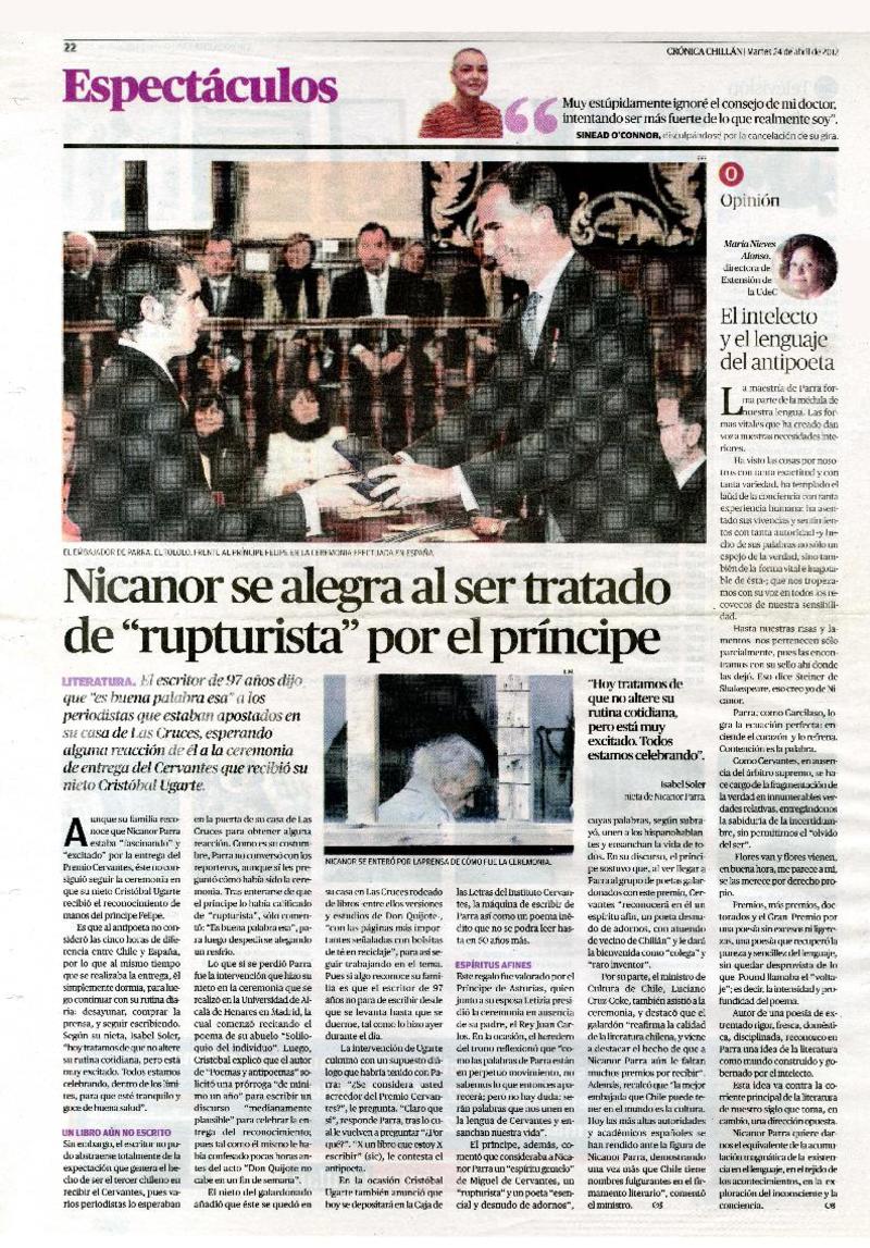Un nuevo libro celebra a Nicanor Parra por su Premio Cervantes [artículo] Constanza Rojas Valdés.