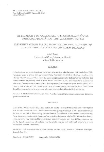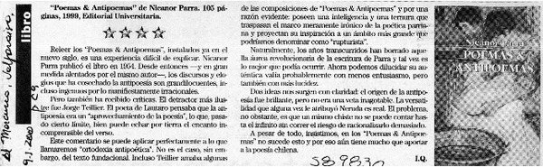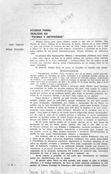 Veinte años de Poemas y antipoemas [artículo] Juan Gabriel Araya.