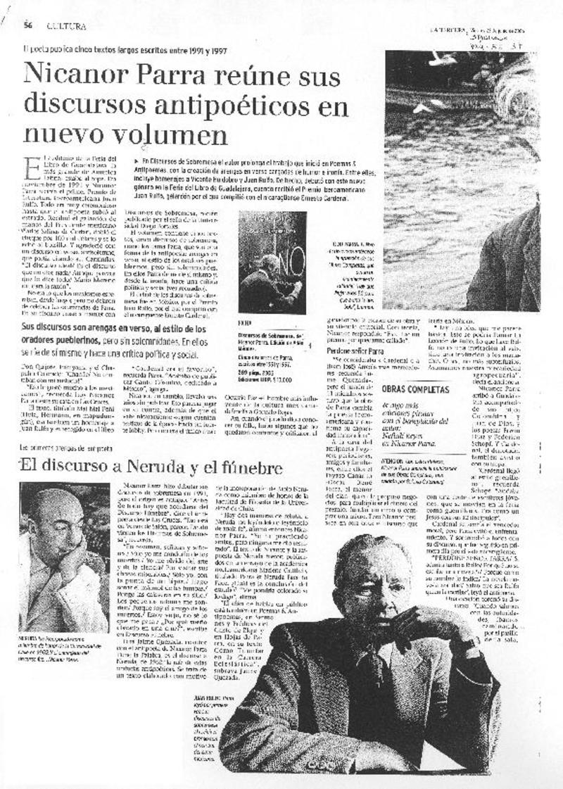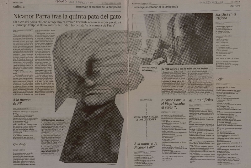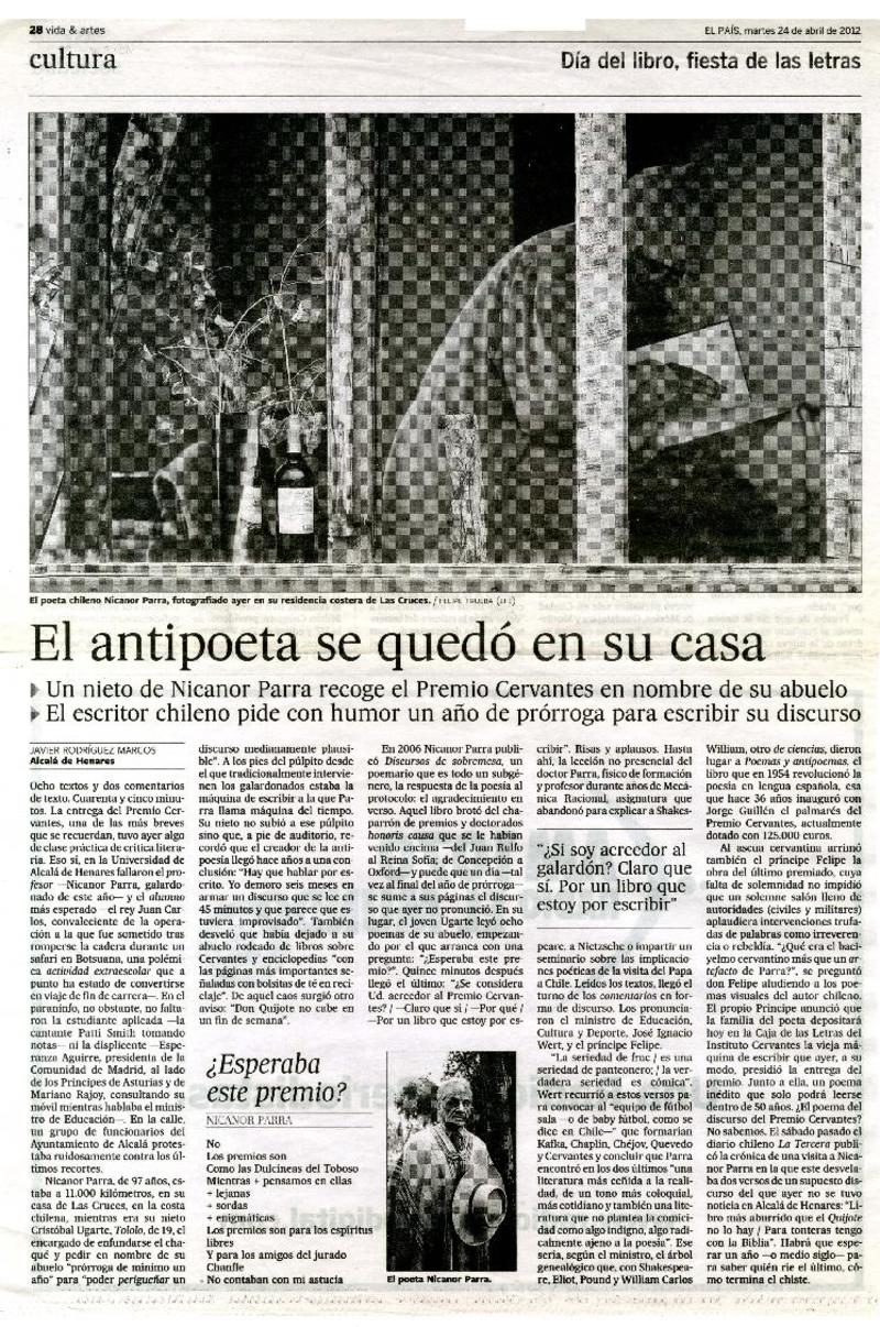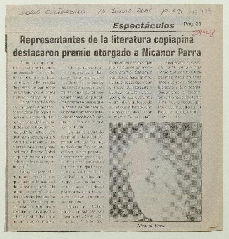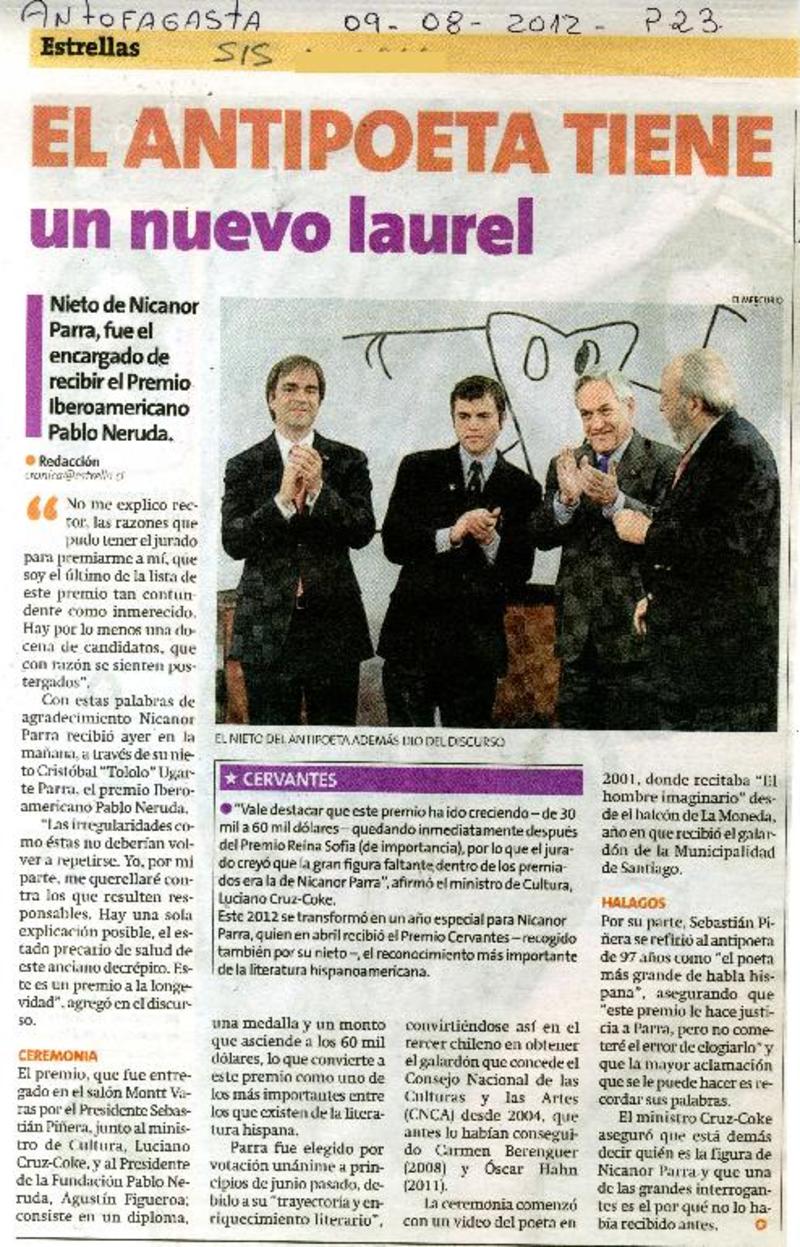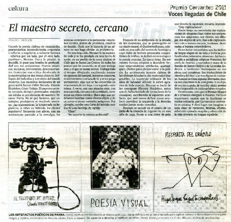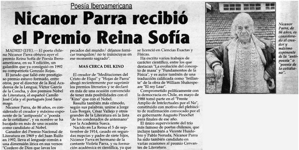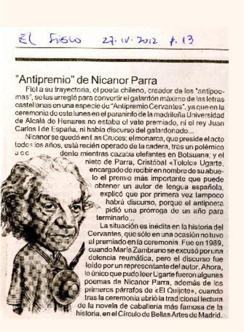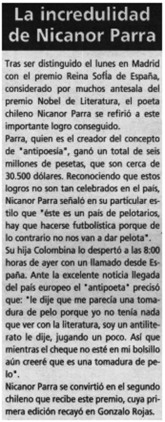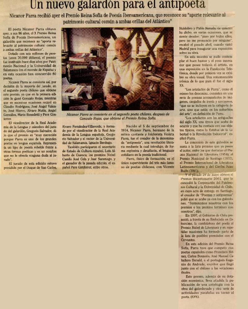 Un nuevo galardón para el antipoeta [artículo] EFE.