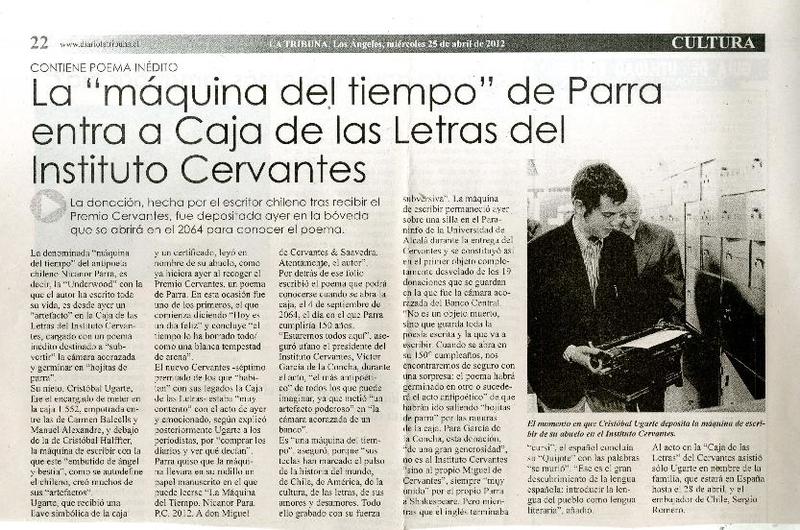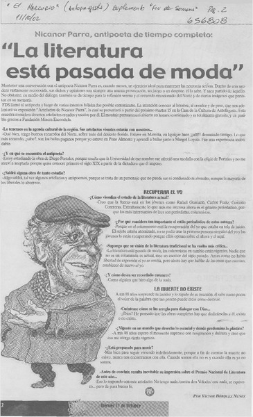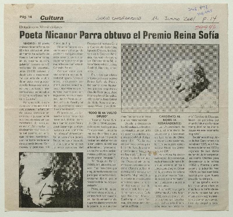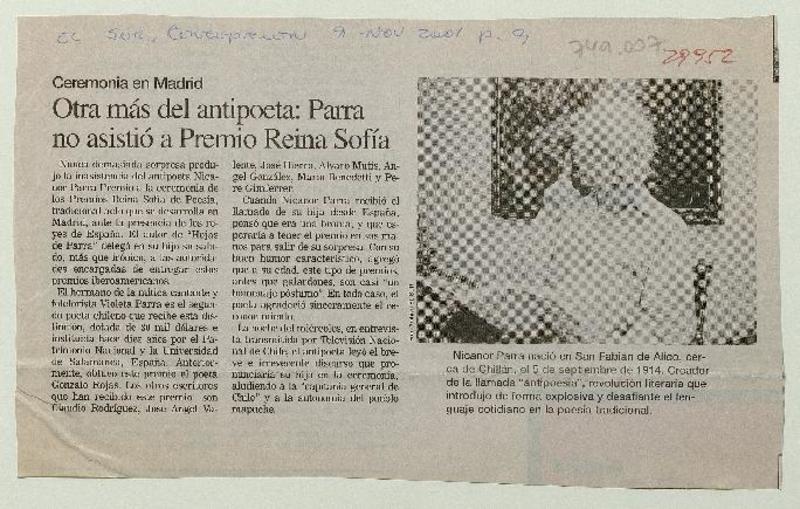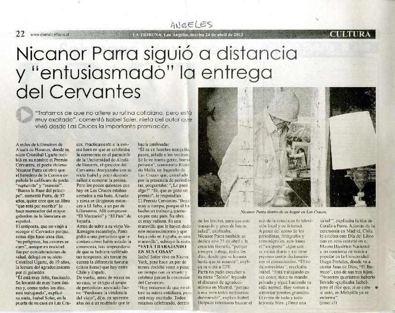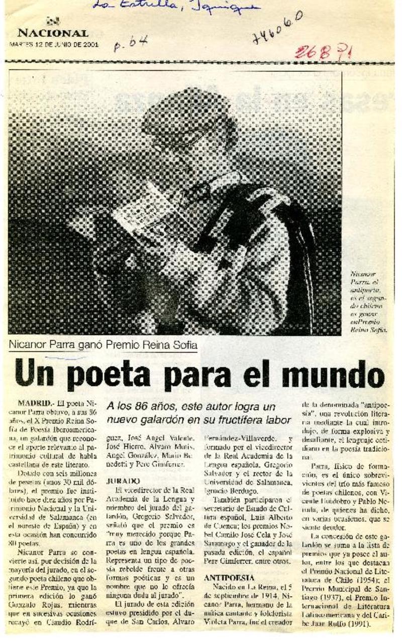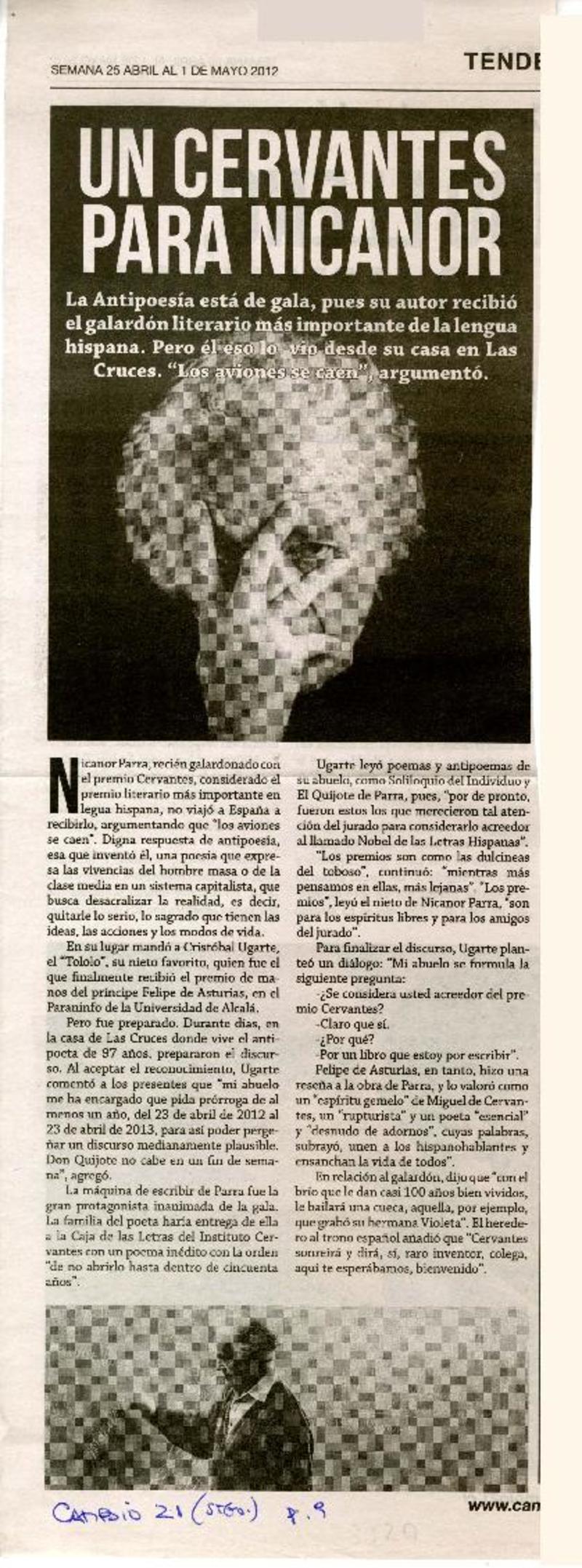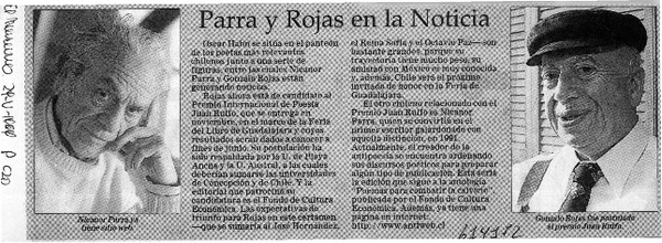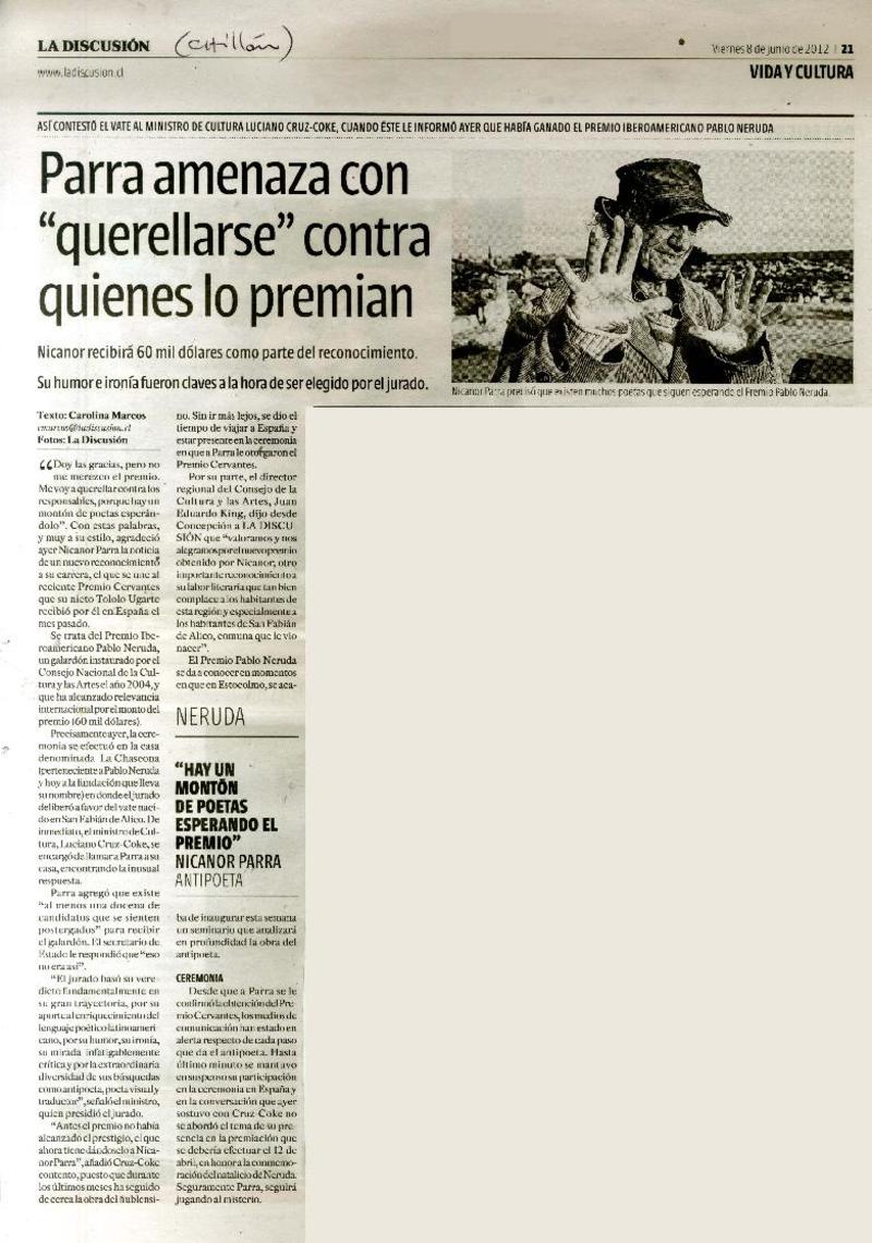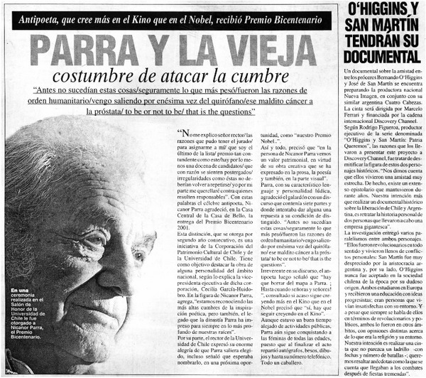 Un nuevo galardón para el antipoeta [artículo] EFE.