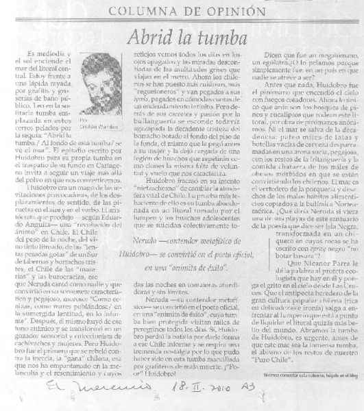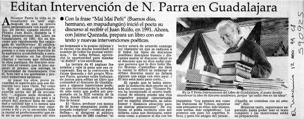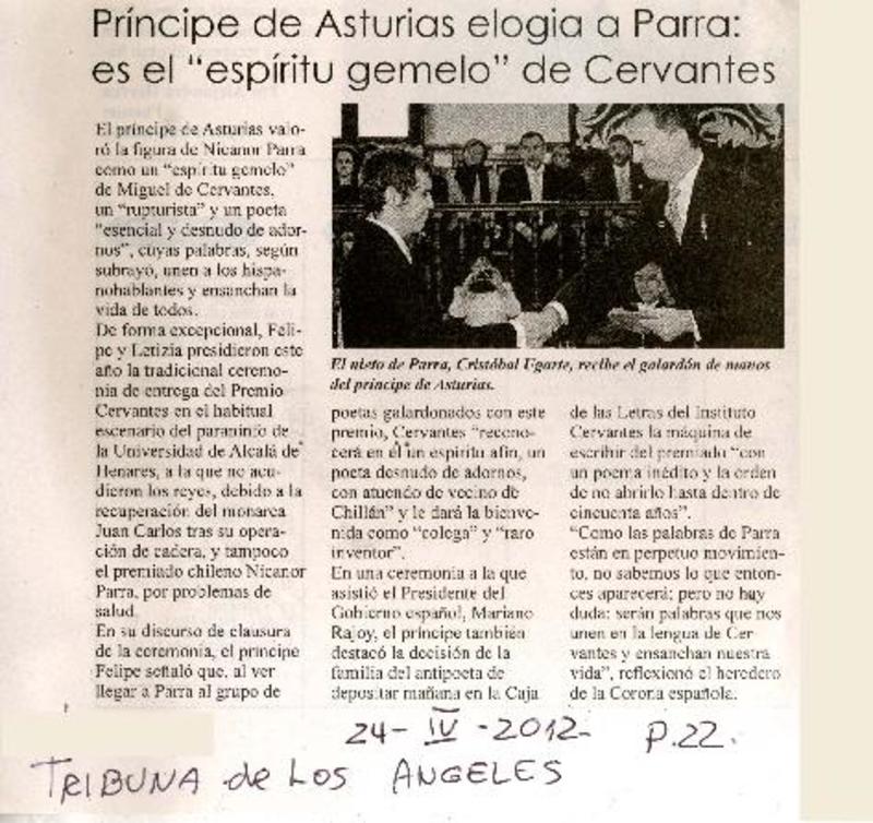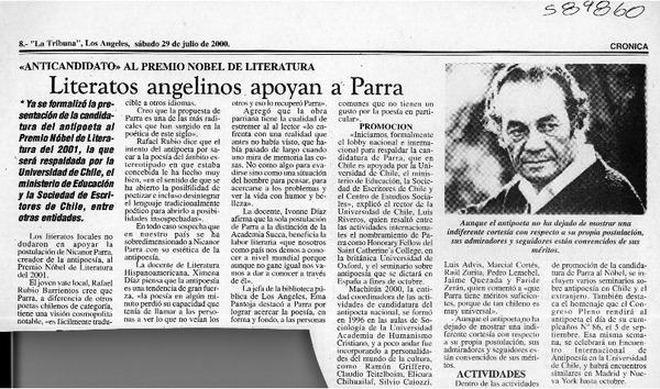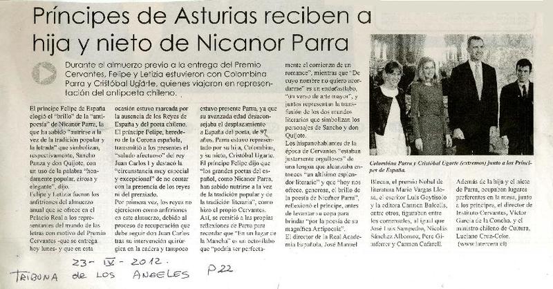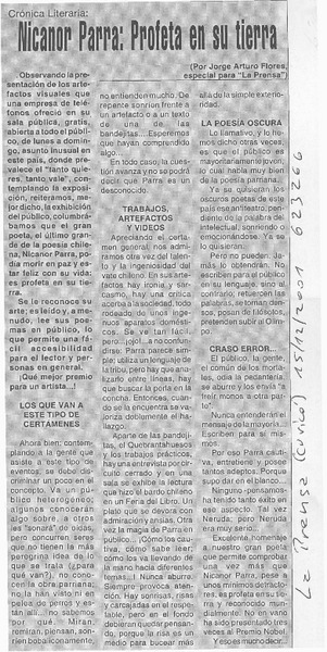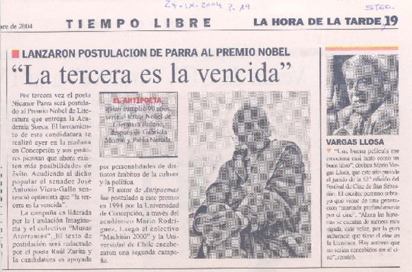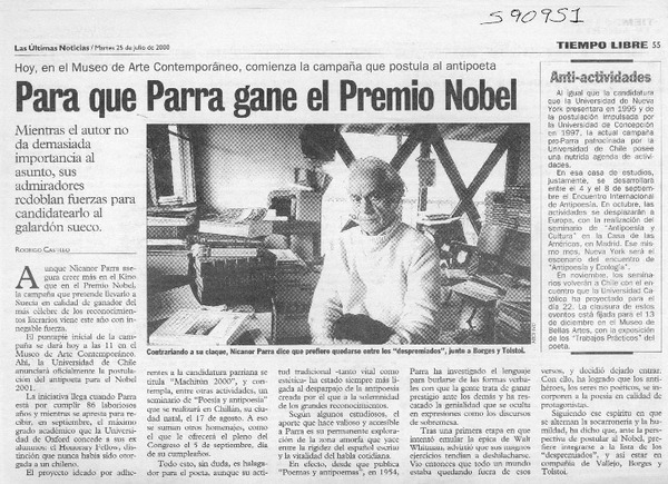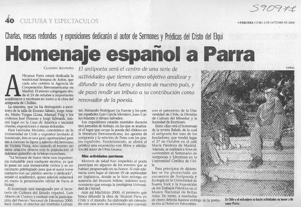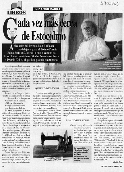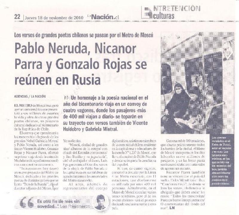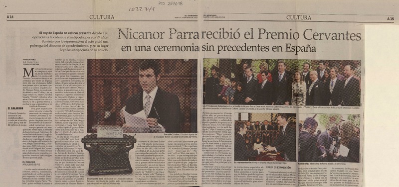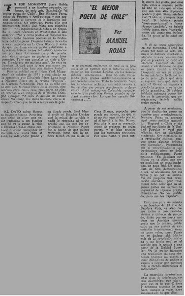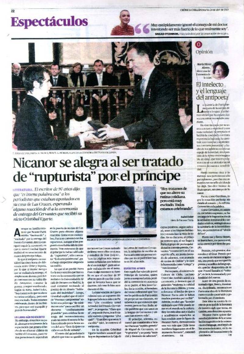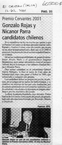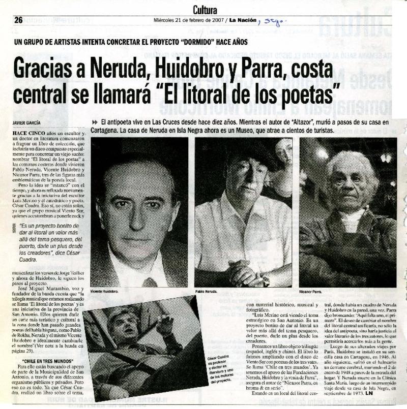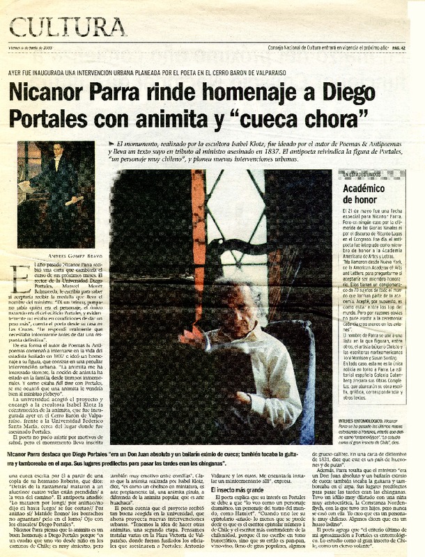 Un nuevo galardón para el antipoeta [artículo] EFE.