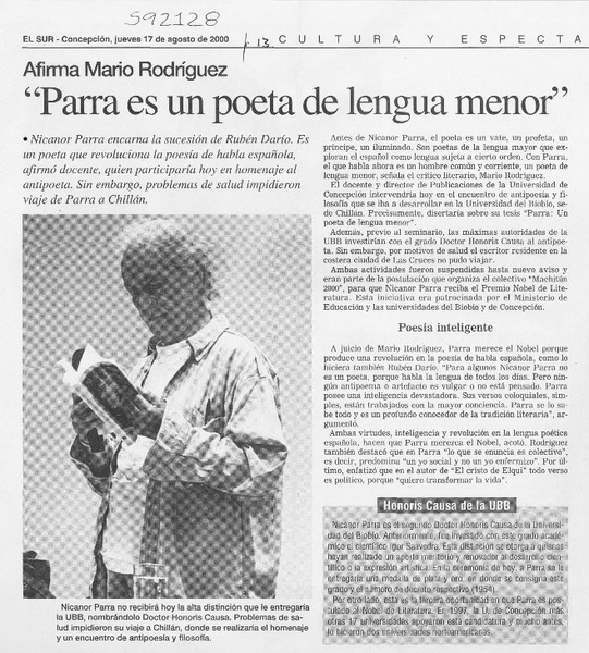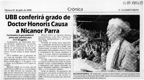 UBB conferirá grado de Doctor Honoris Causa a Nicanor Parra [artículo]