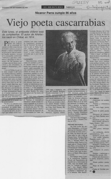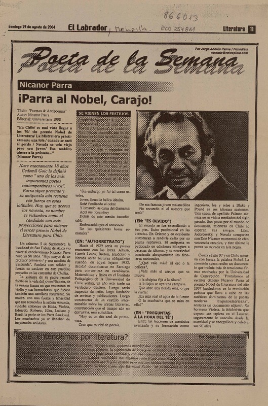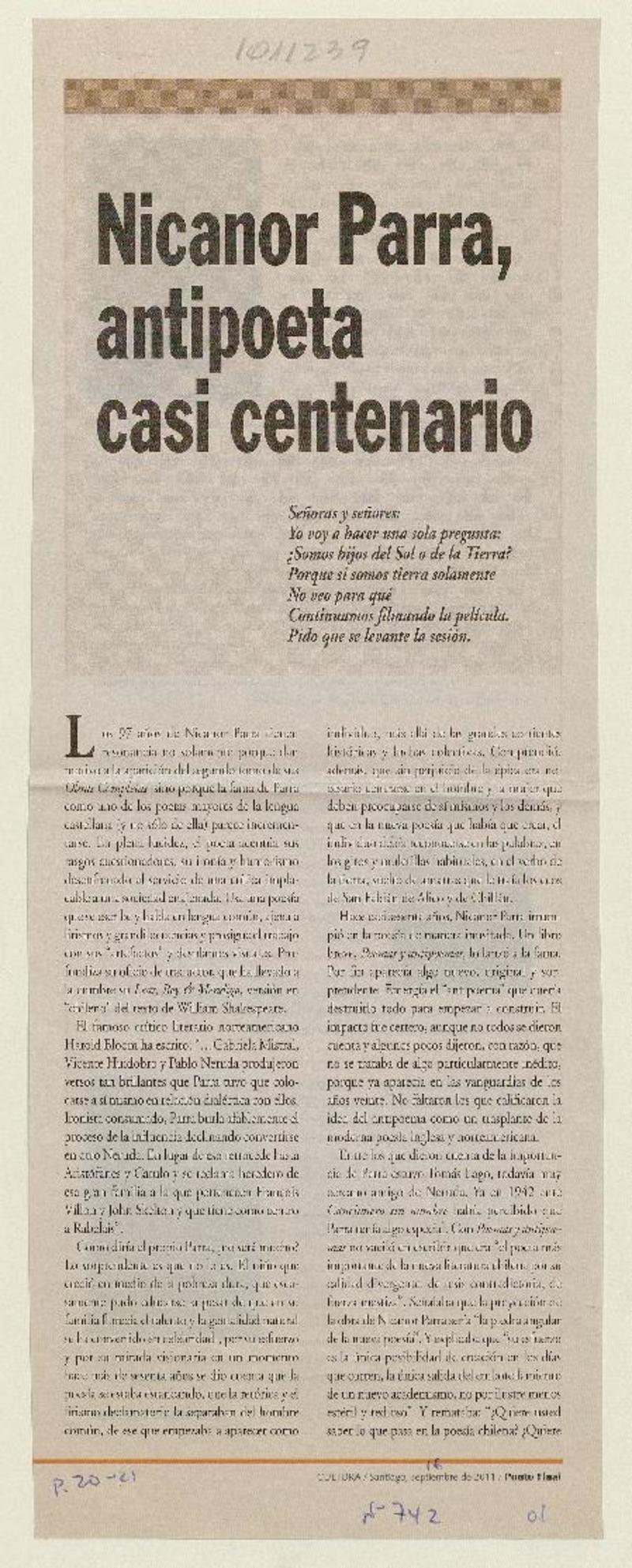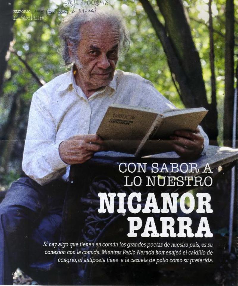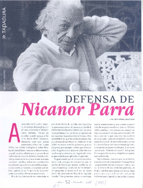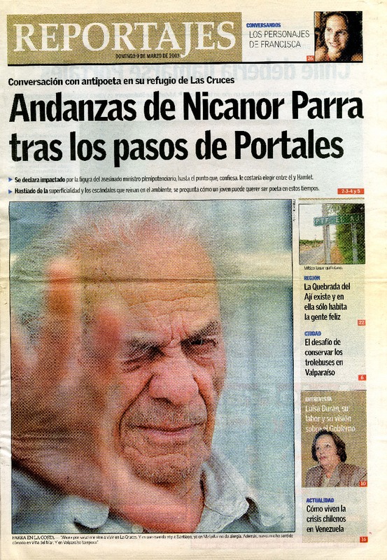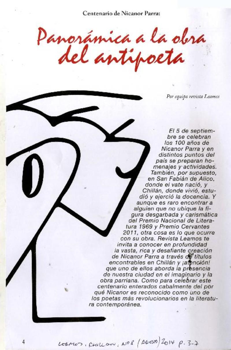 Ad portas de un siglo de vida Nicanor Parra, el antipoeta chileno [artículo] Óscar Ortíz