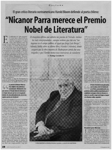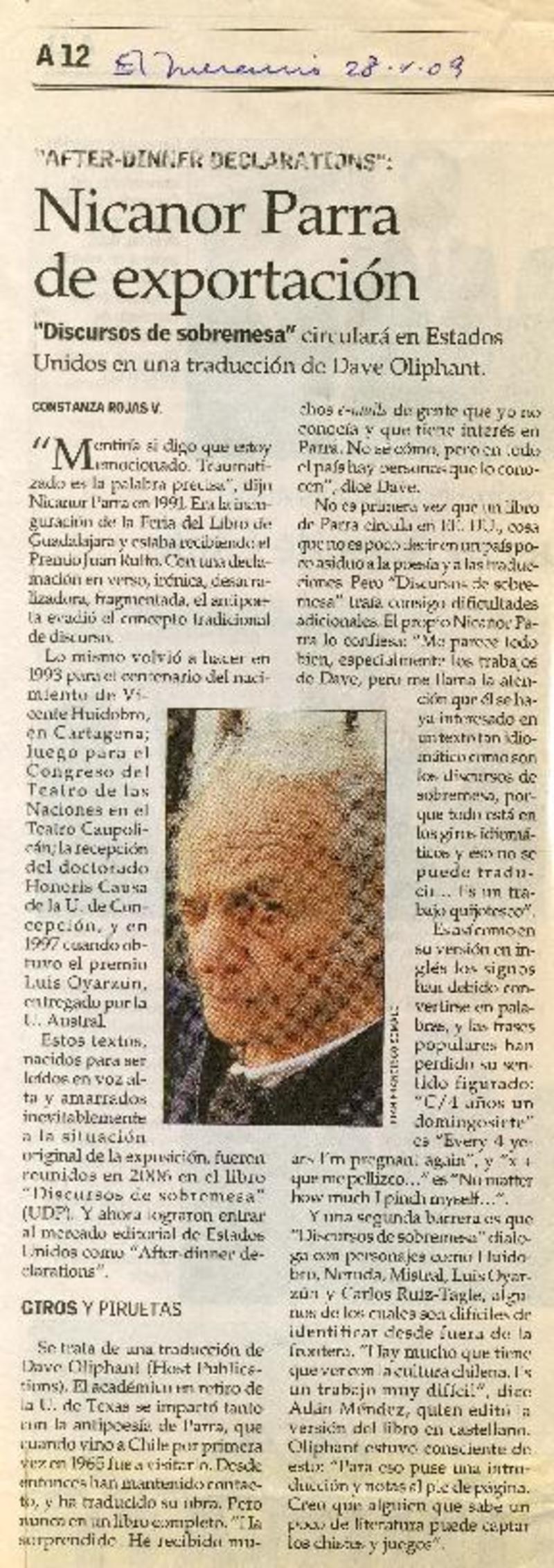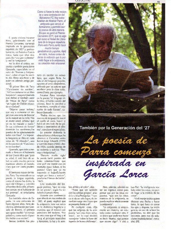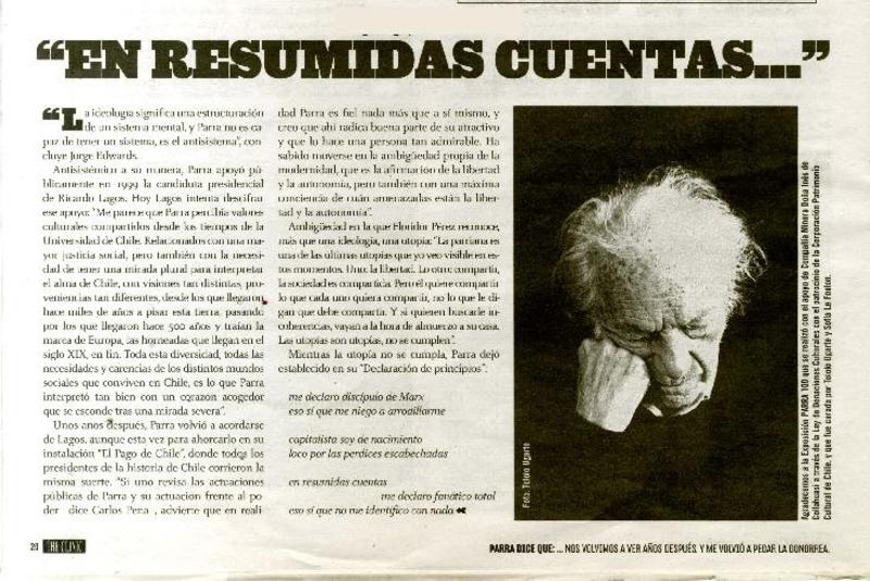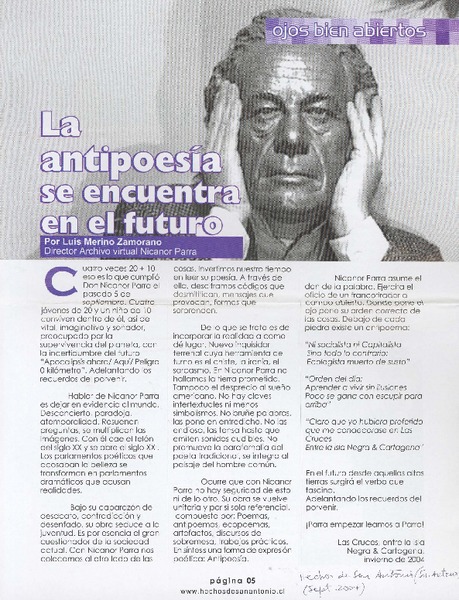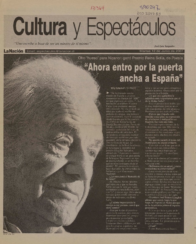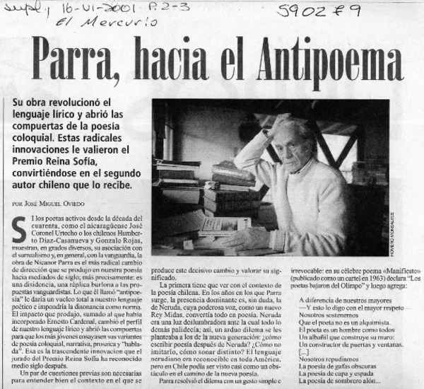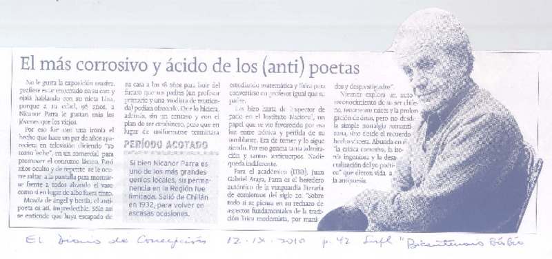Ad portas de un siglo de vida Nicanor Parra, el antipoeta chileno [artículo] Óscar Ortíz