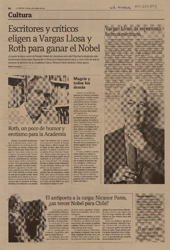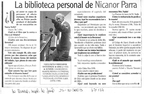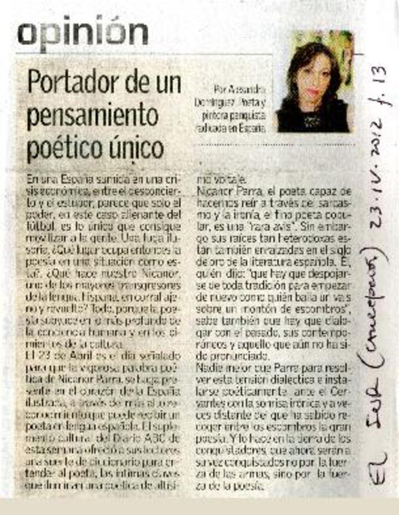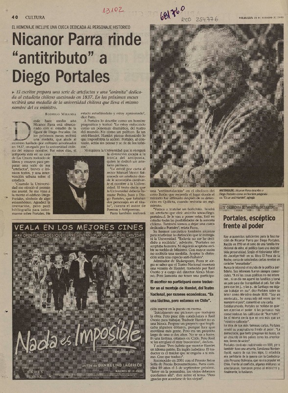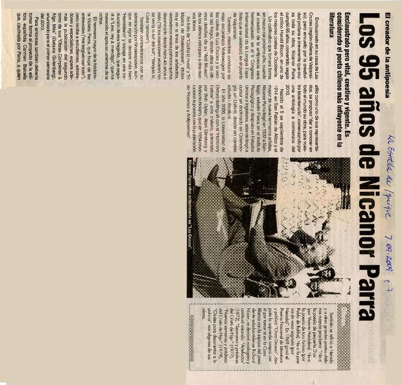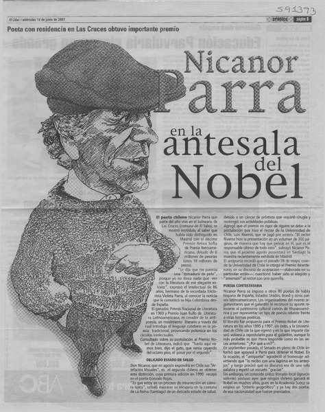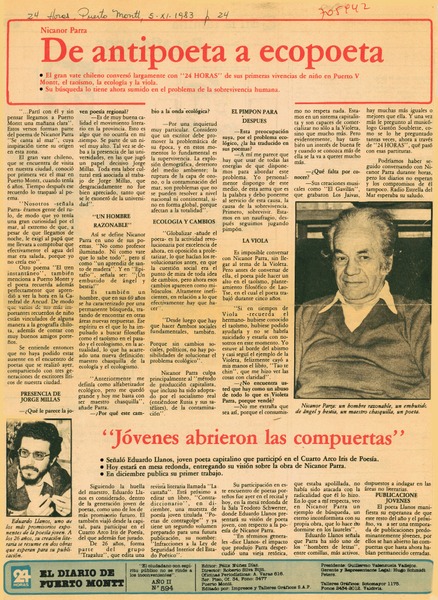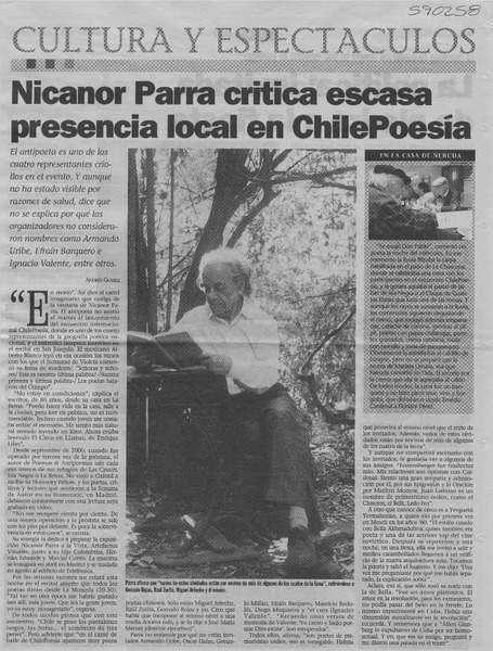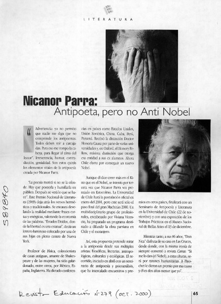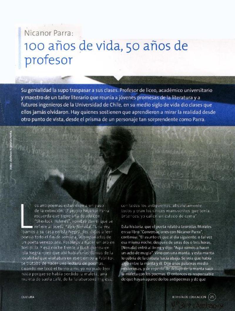 Ad portas de un siglo de vida Nicanor Parra, el antipoeta chileno [artículo] Óscar Ortíz