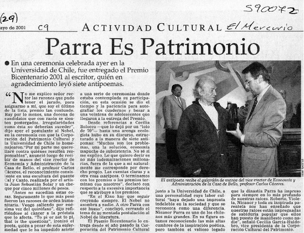 Admirador de Parra [artículo] Alberto Cardemil Herrera.