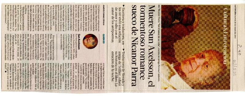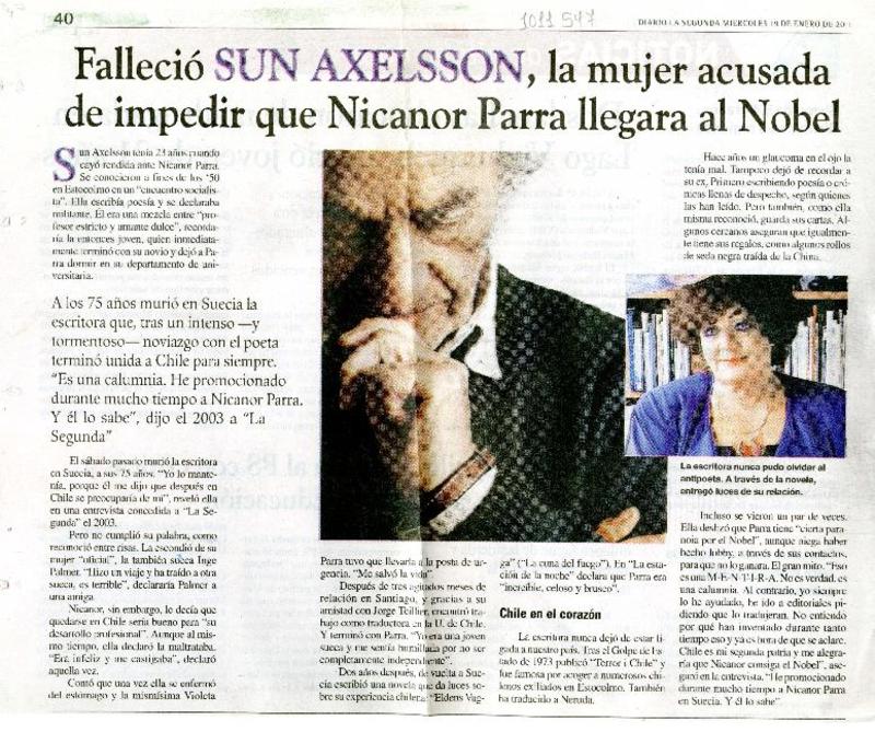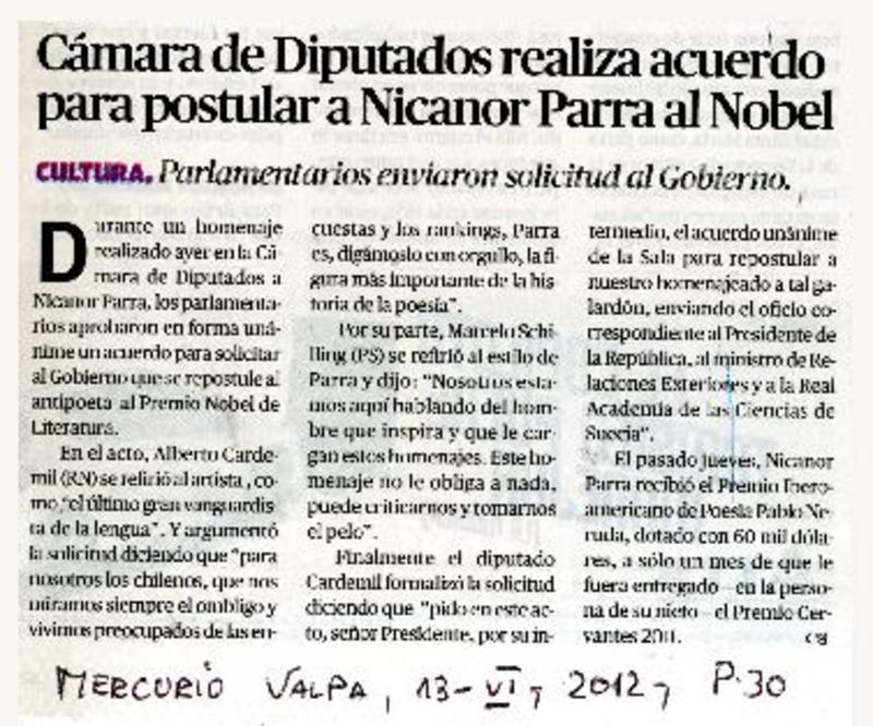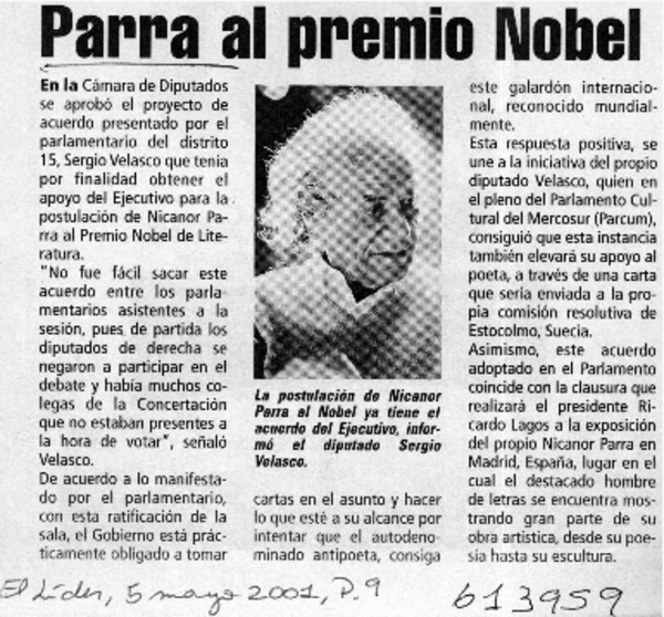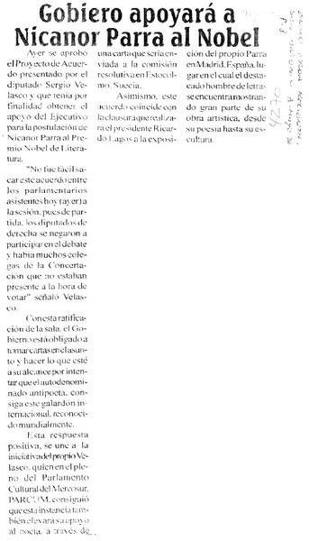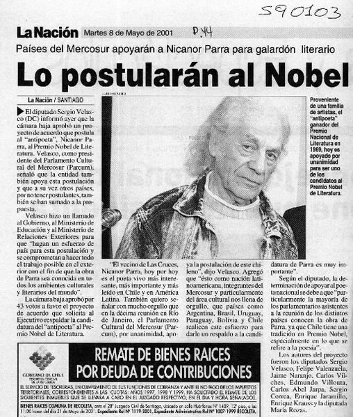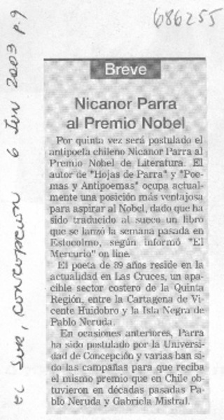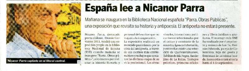 Traducirán textos de Nicanor Parra al sueco para postulación al Nobel [artículo] A. S. C.