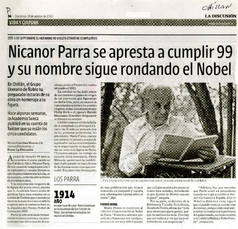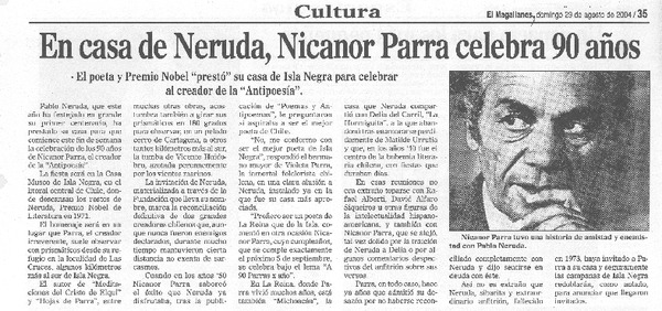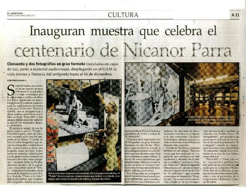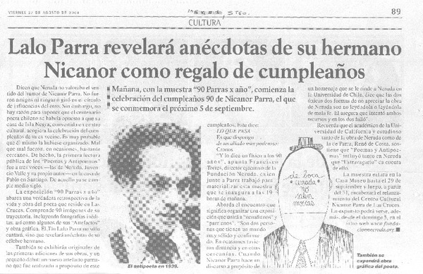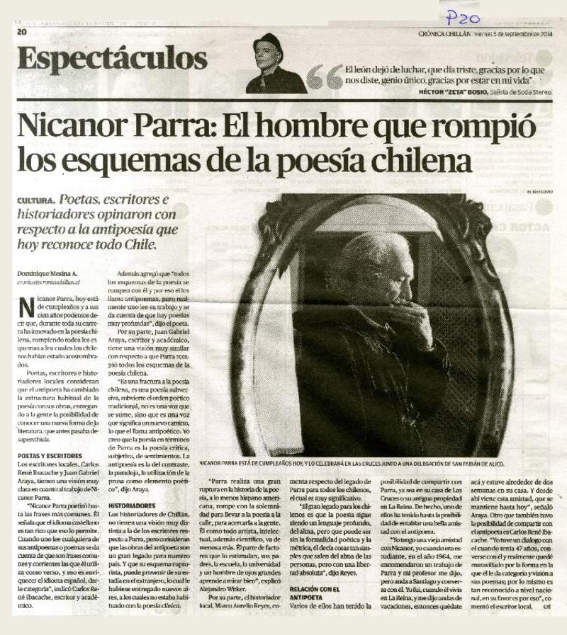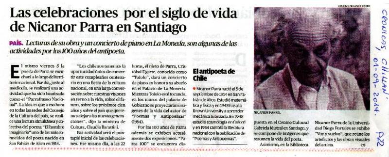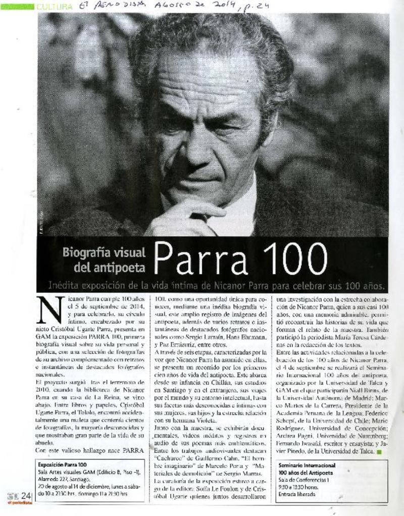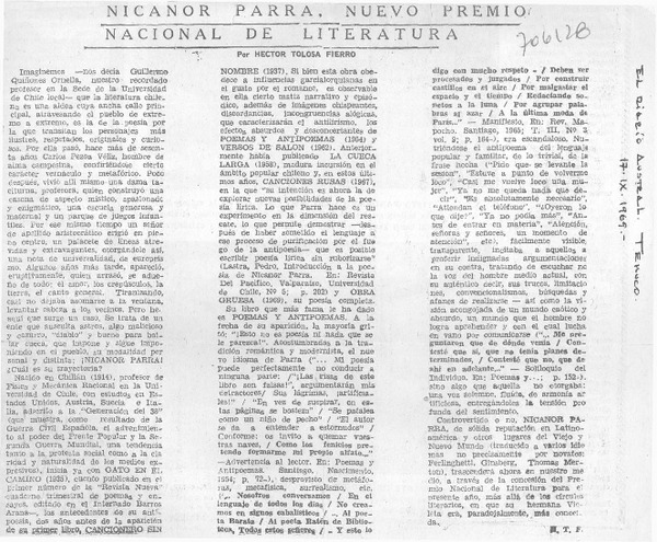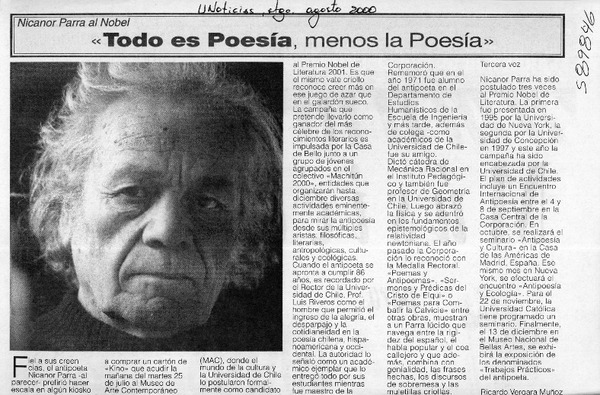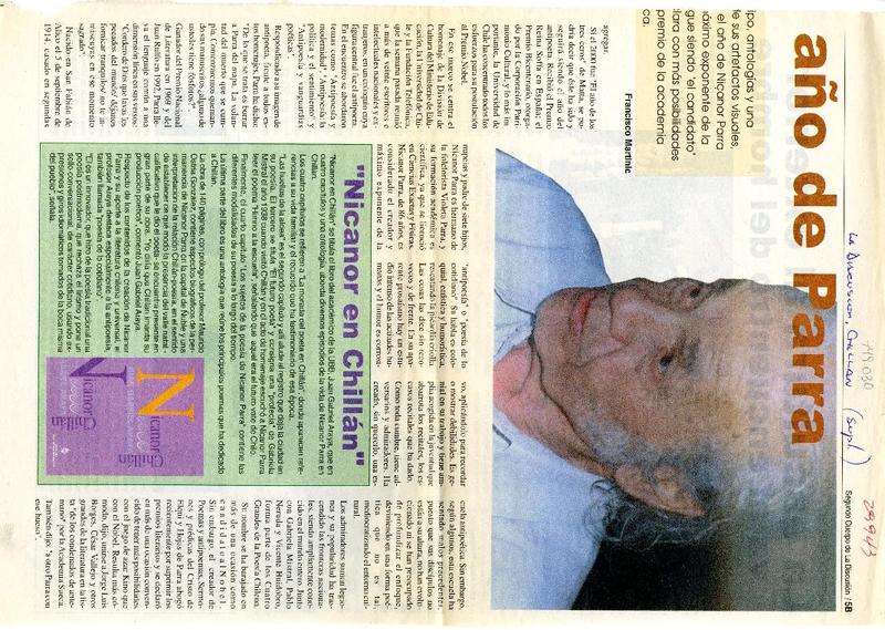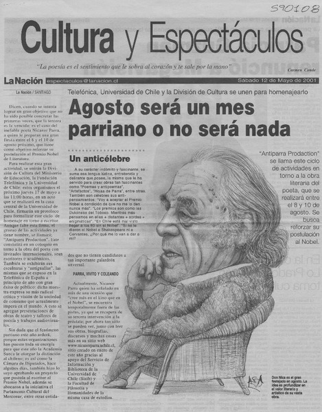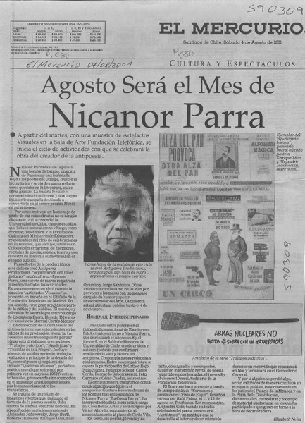 Agosto será el mes de Nicanor Parra [artículo] Elizabeth Neira