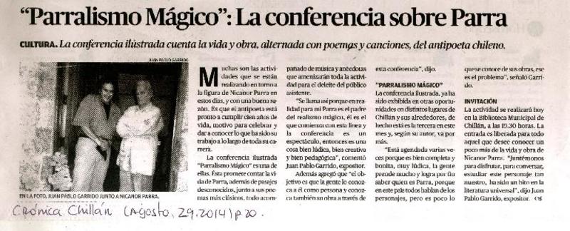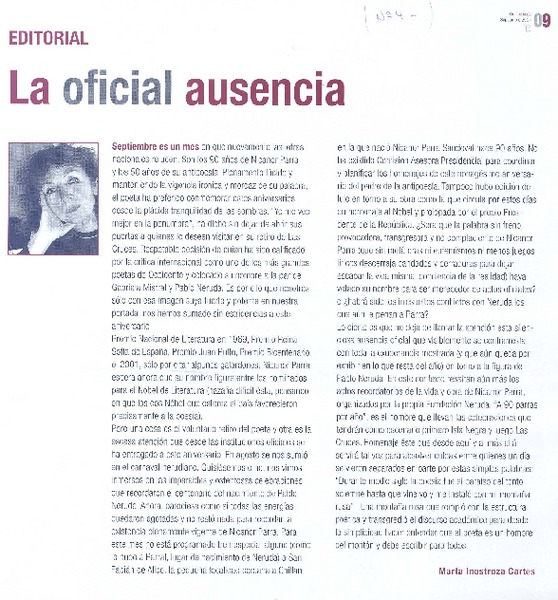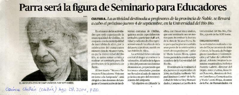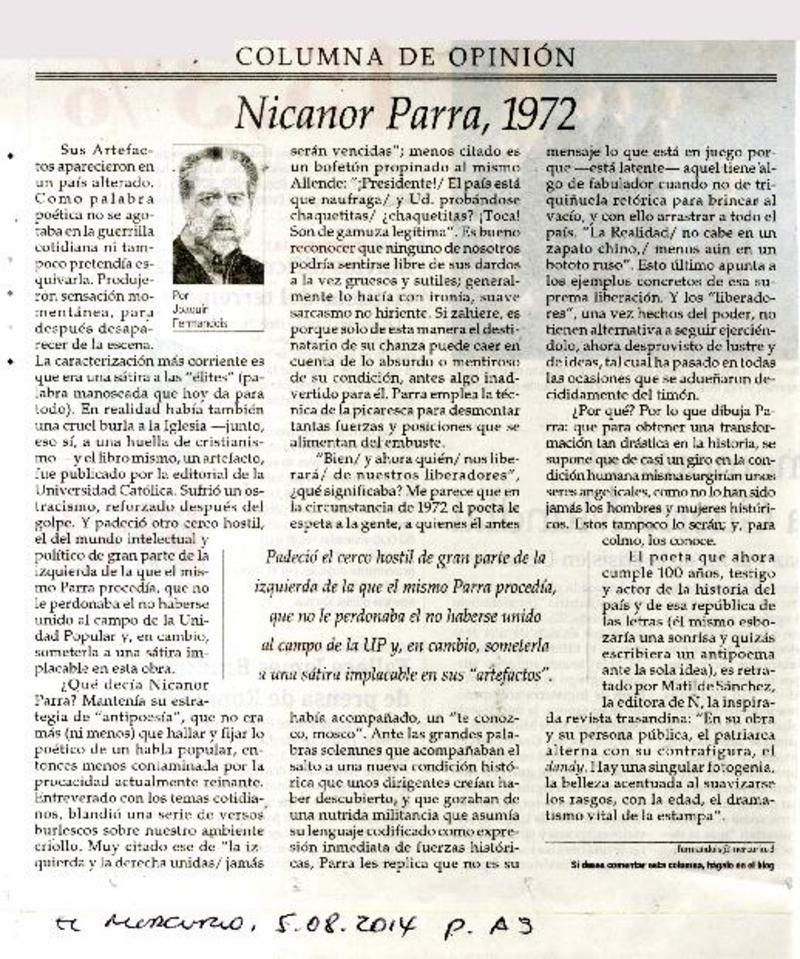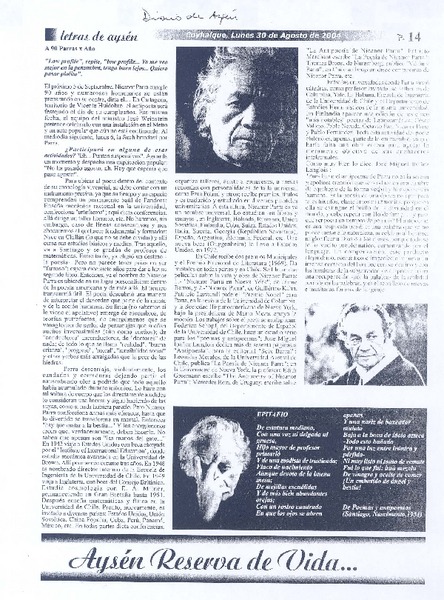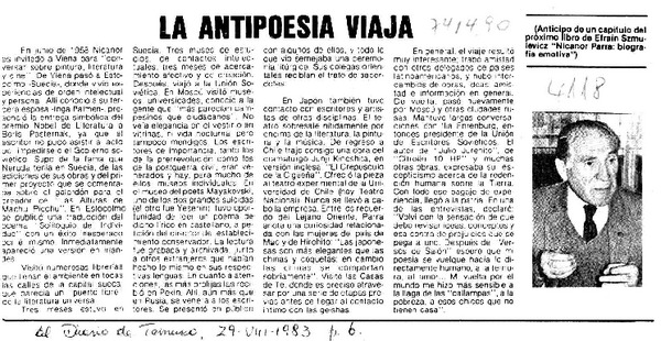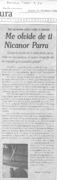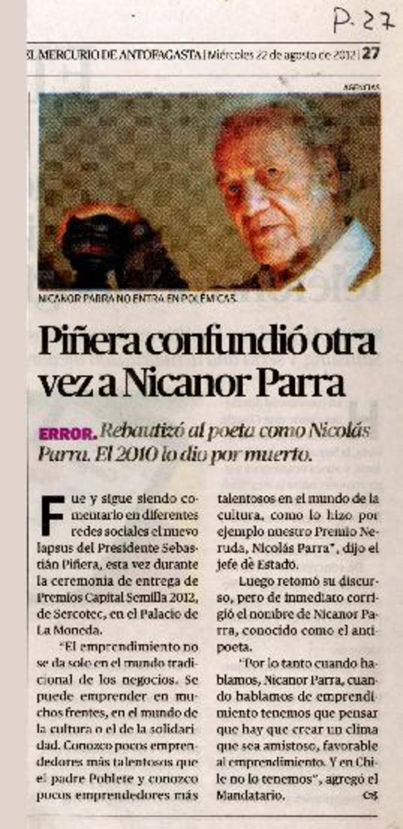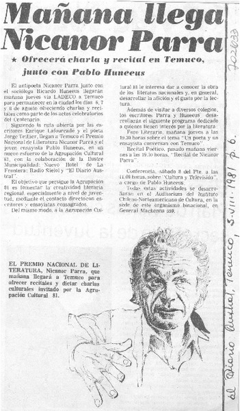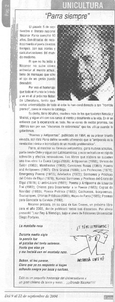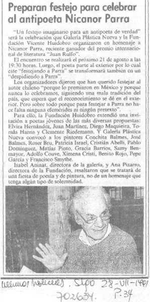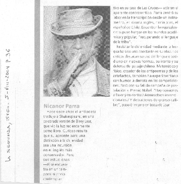 Agosto será el mes de Nicanor Parra [artículo] Elizabeth Neira