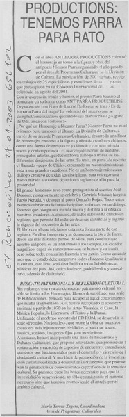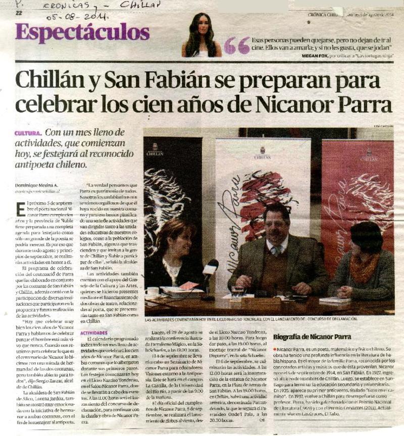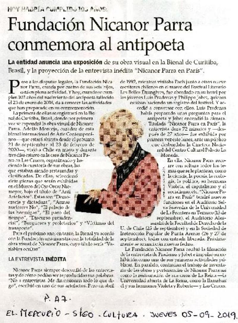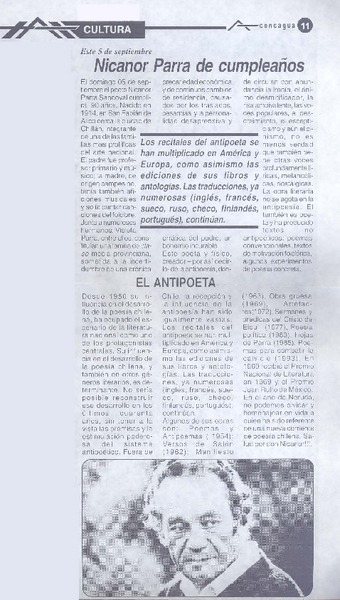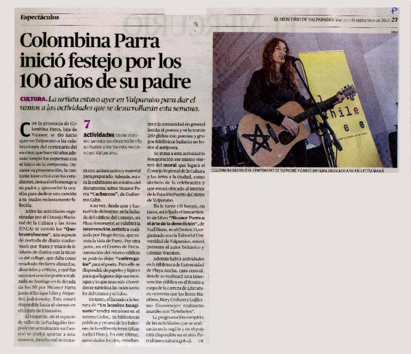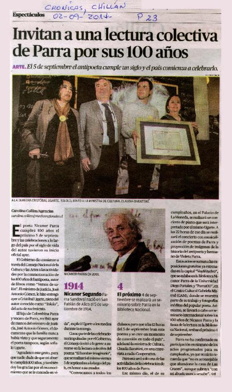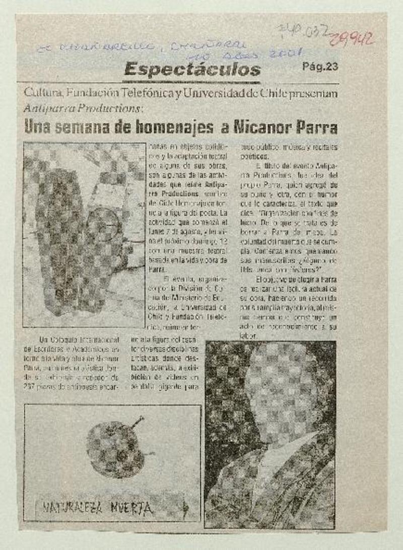 Antiparra productions, ciclo homenaje en torno a la figura y obra de Nicanor Parra [artículo]Manuel Alcides Jofré.