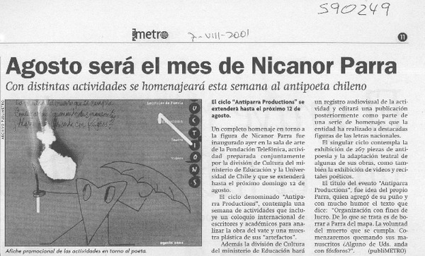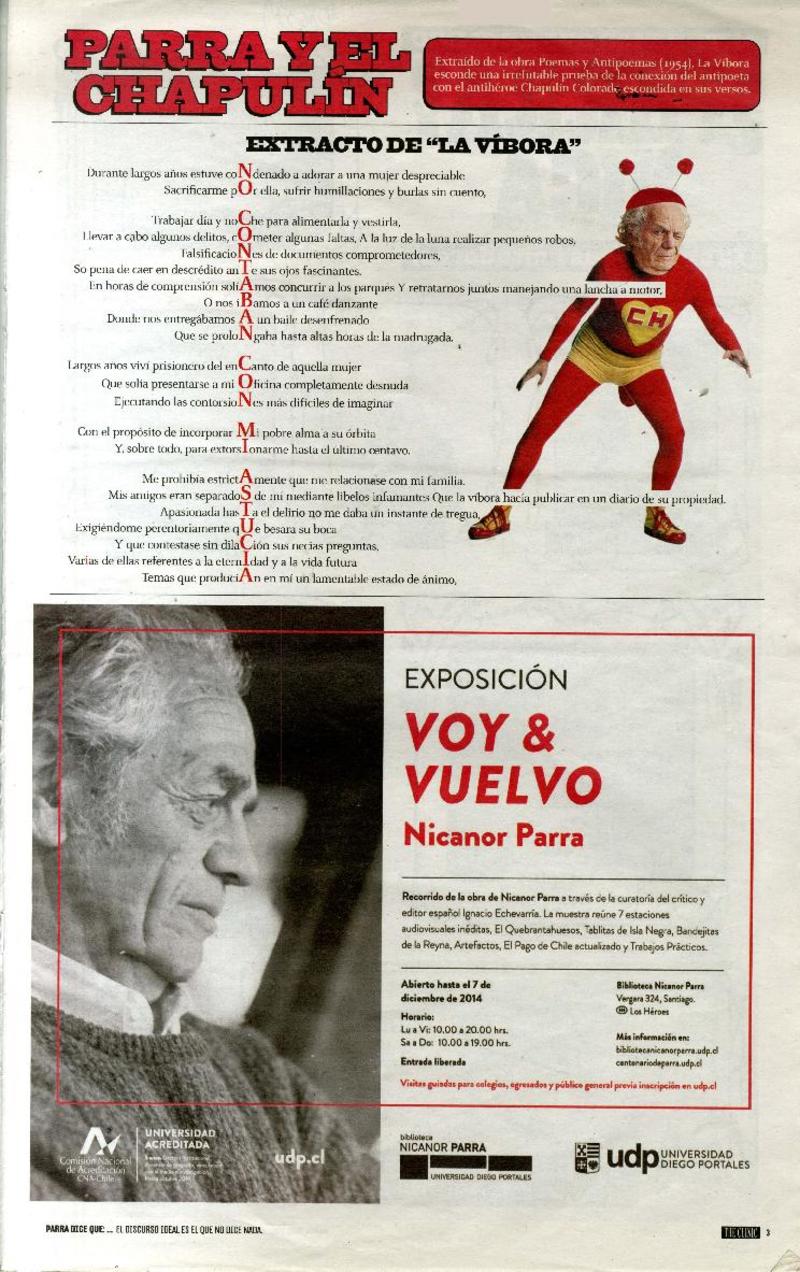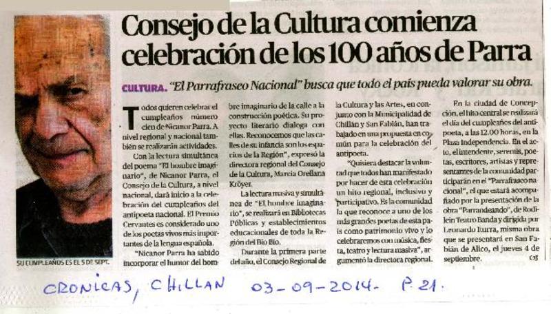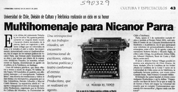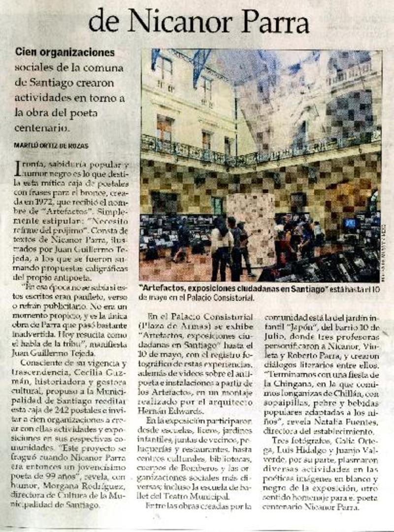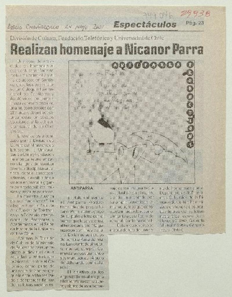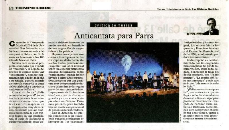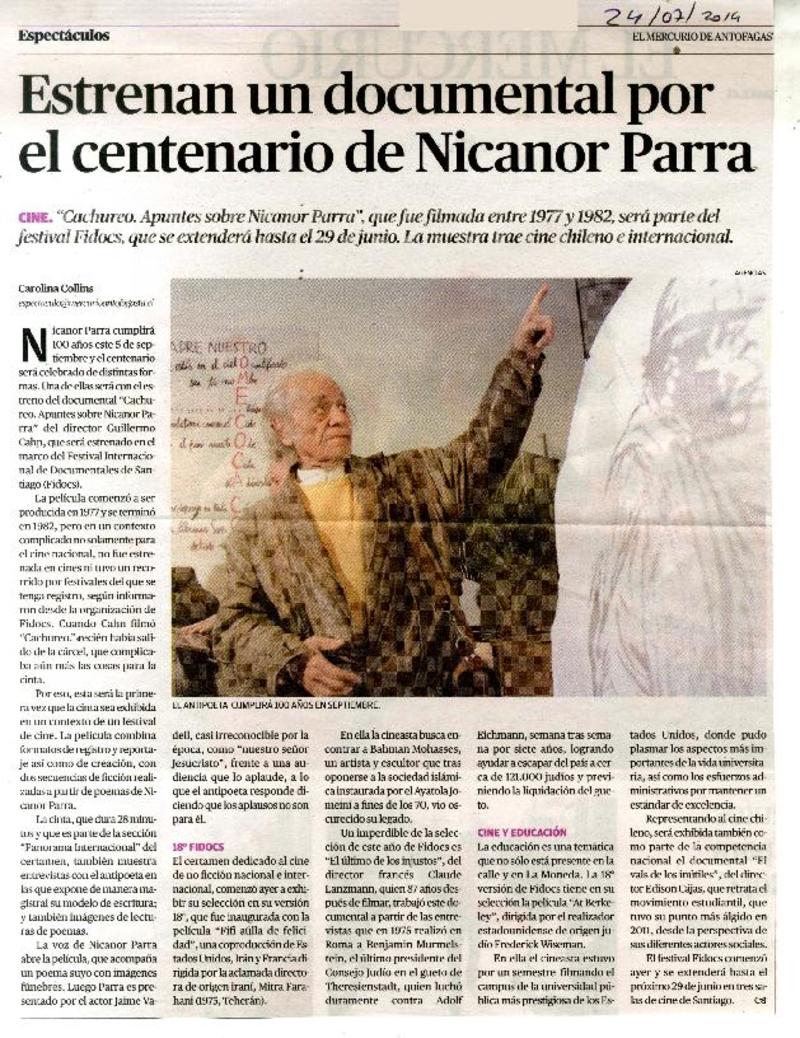 Antiparra productions, ciclo homenaje en torno a la figura y obra de Nicanor Parra [artículo]Manuel Alcides Jofré.