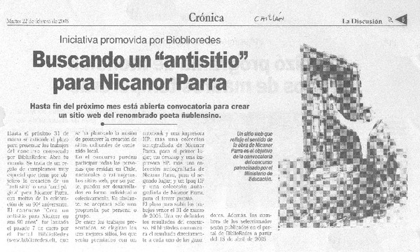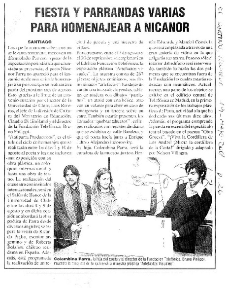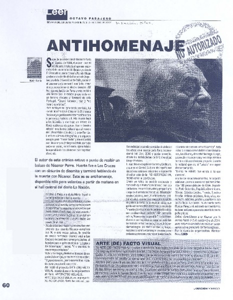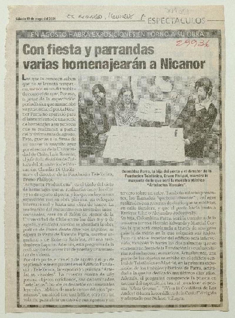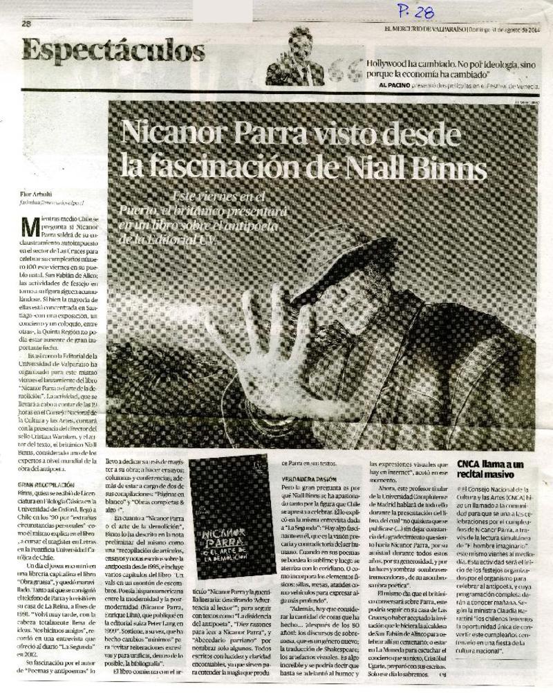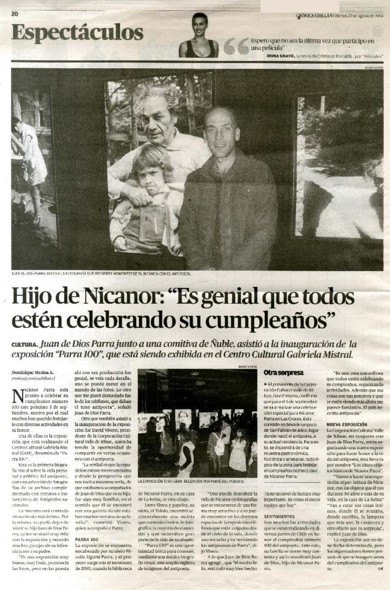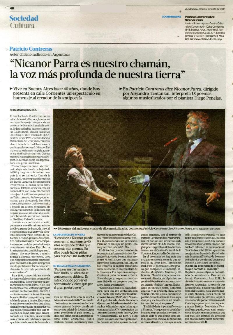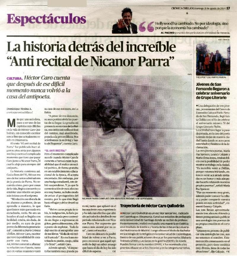 Antiparra productions, ciclo homenaje en torno a la figura y obra de Nicanor Parra [artículo]Manuel Alcides Jofré.