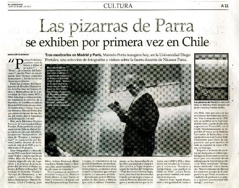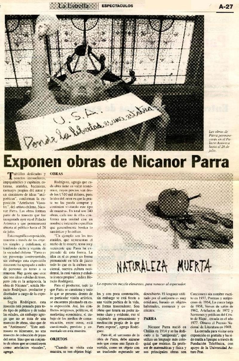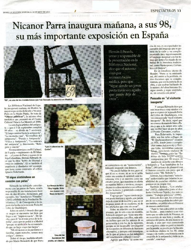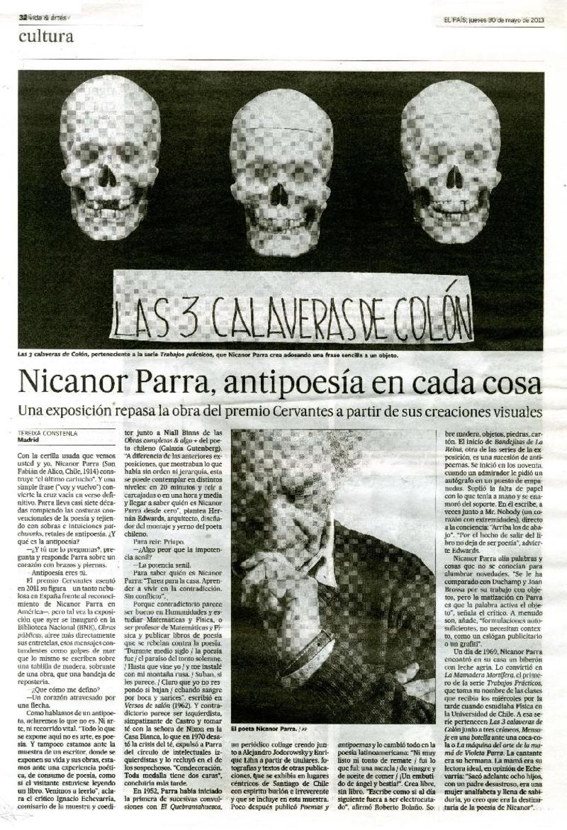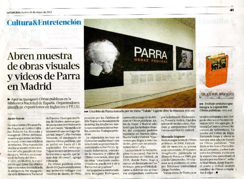Abren muestra de obras visuales y videos de Parra en Madrid [artículo] Javier García.