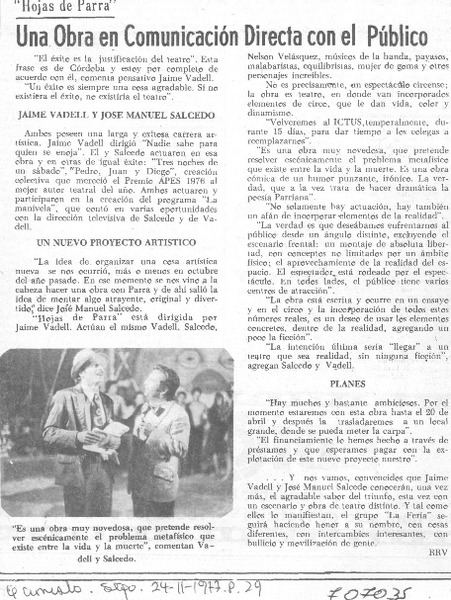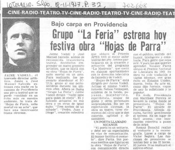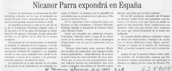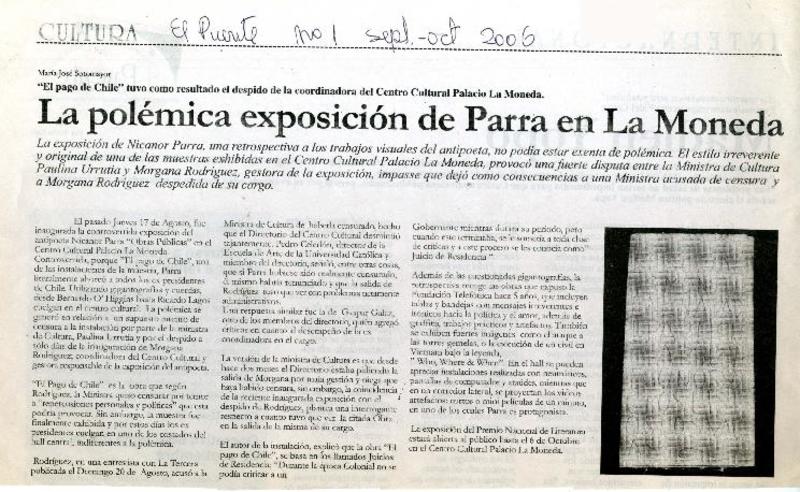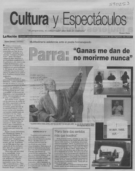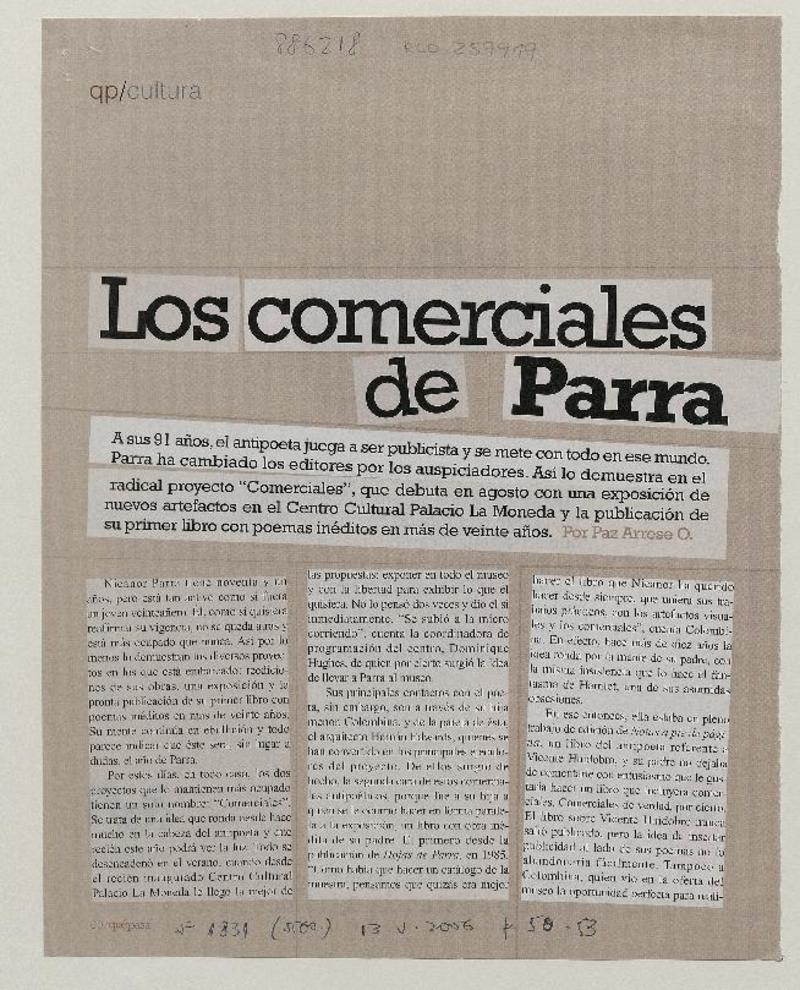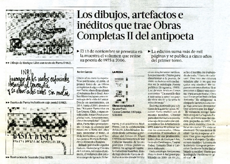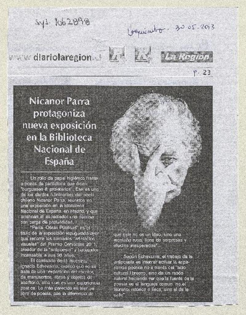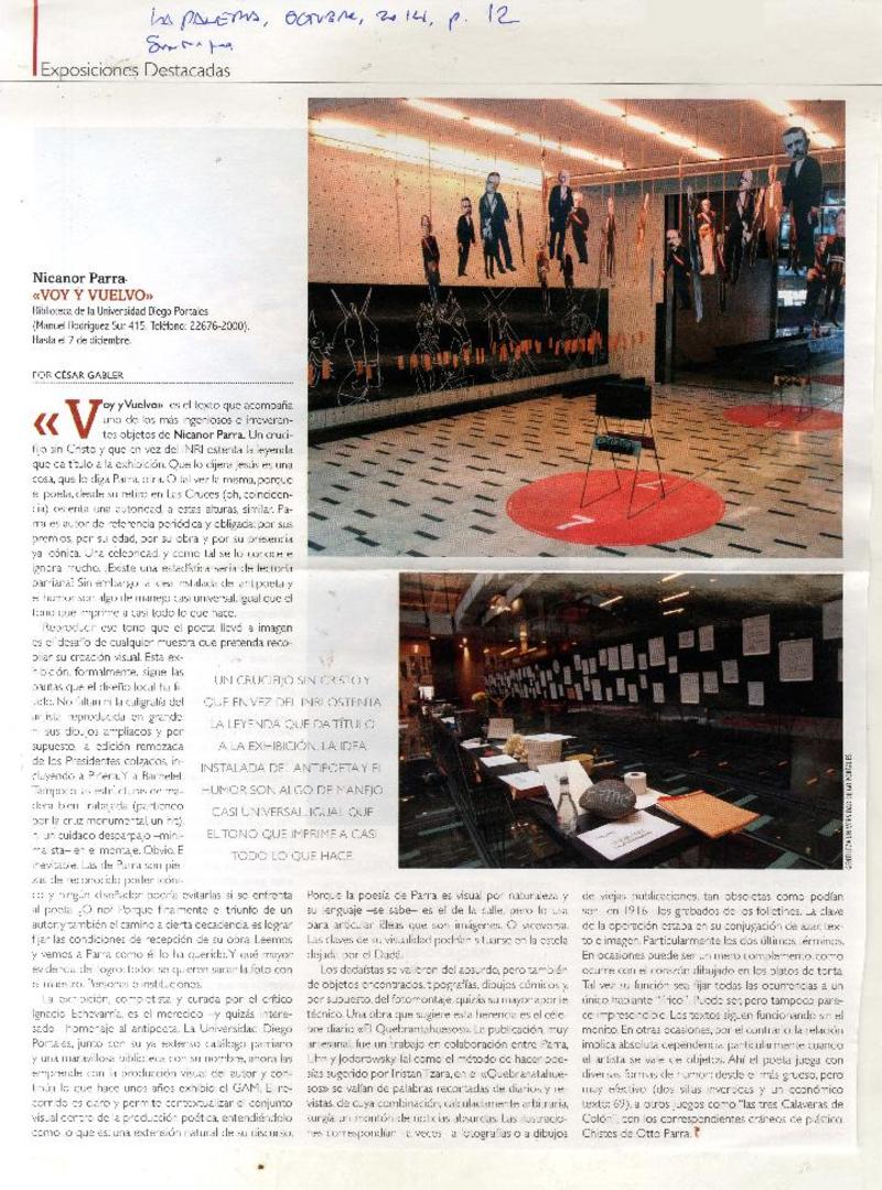 Abren muestra de obras visuales y videos de Parra en Madrid [artículo] Javier García.