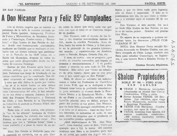A don Nicanor Parra y feliz 85° cumpleaños [artículo] Cristina Urrutia Sepúlveda