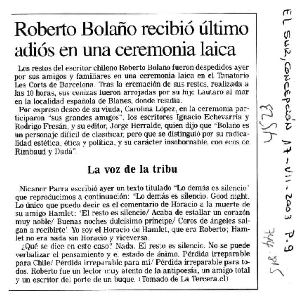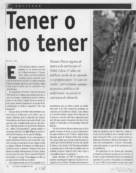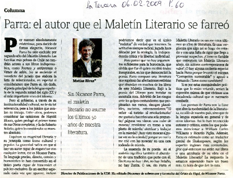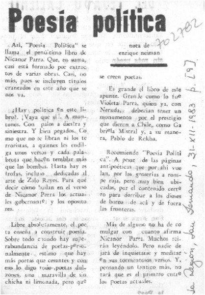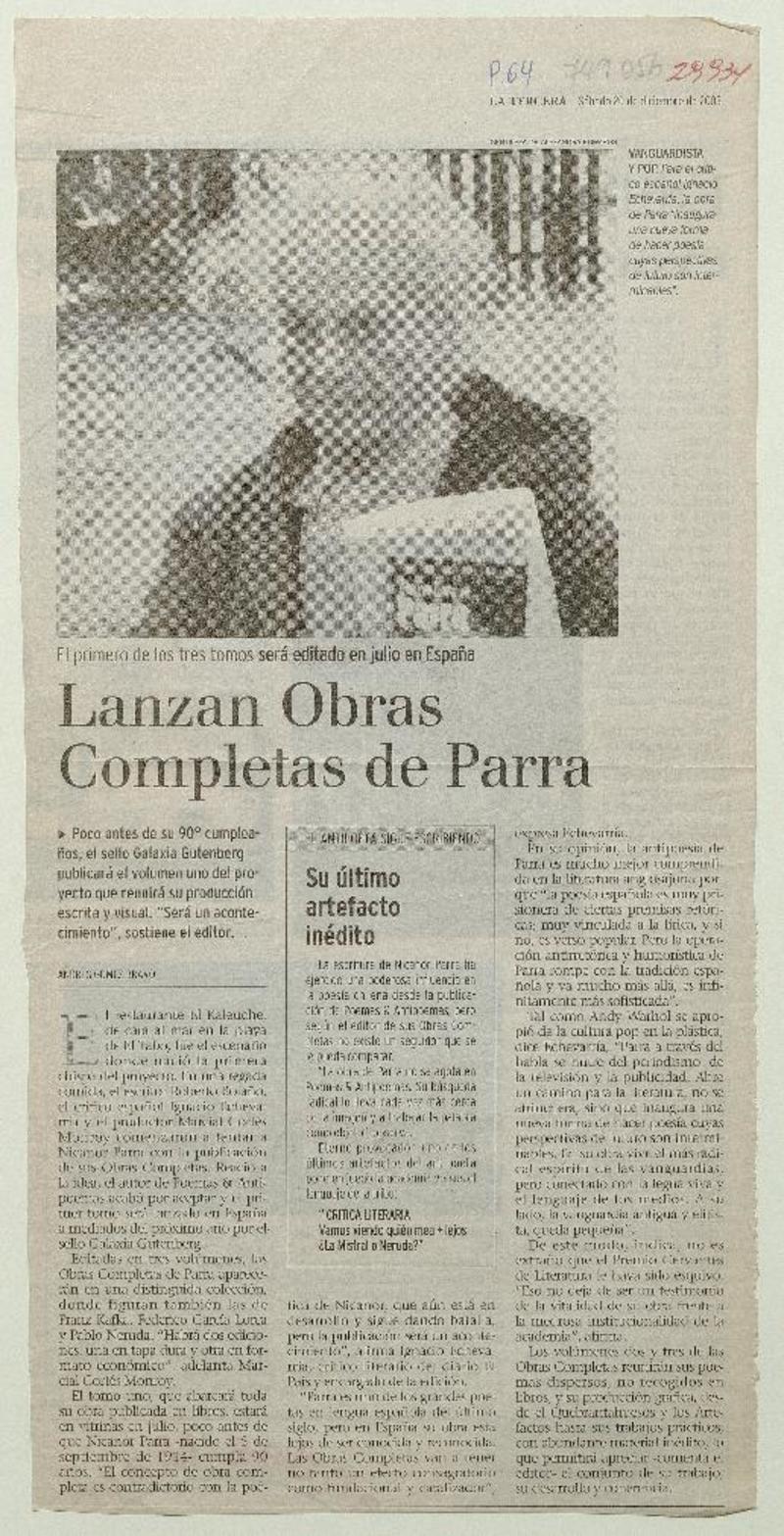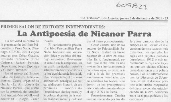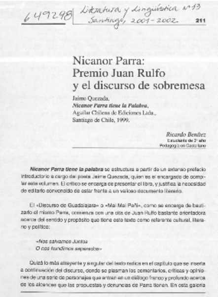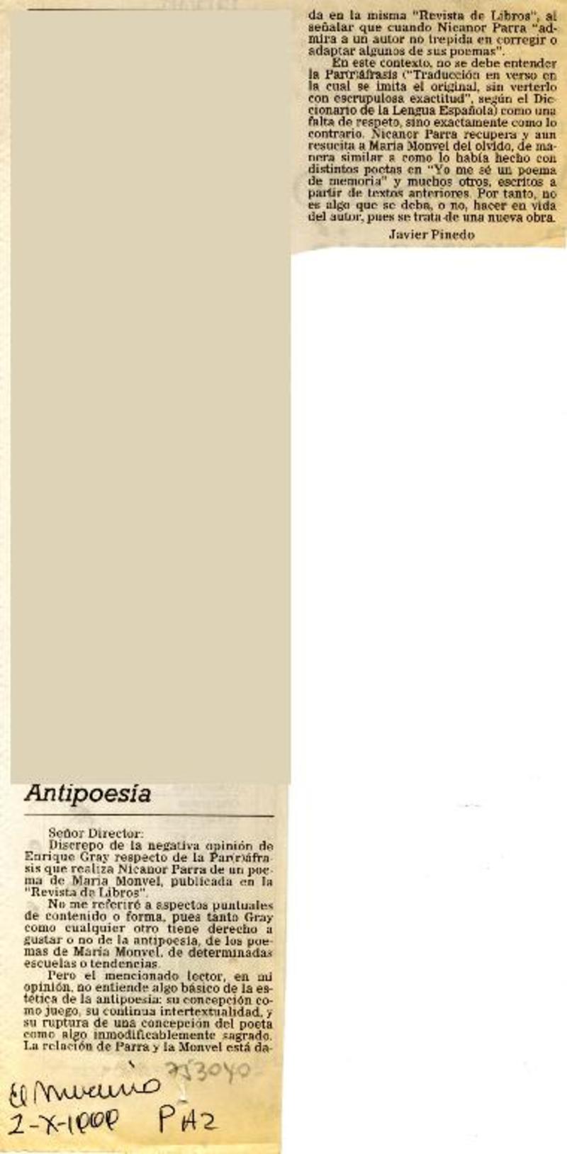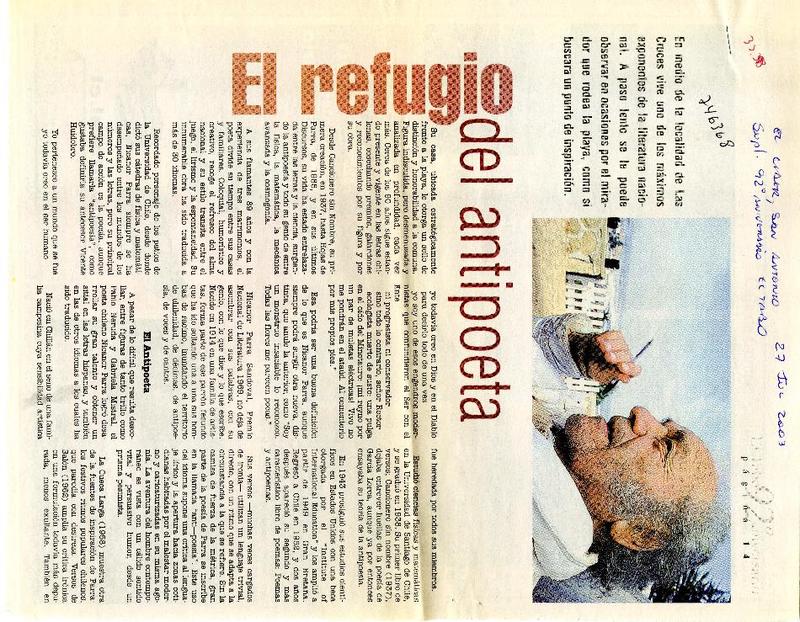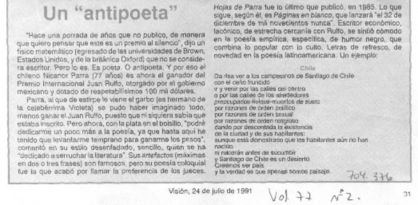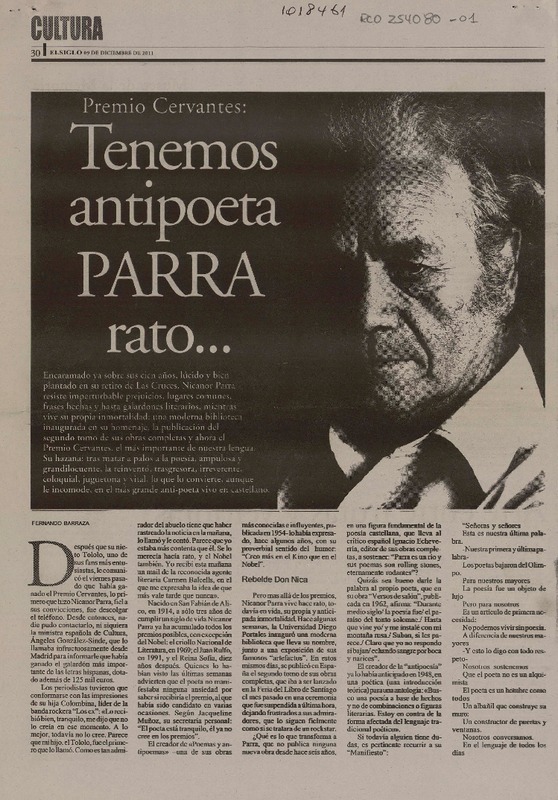 Tenemos antipoeta Parra rato-- [artículo] Fernando Barraza.