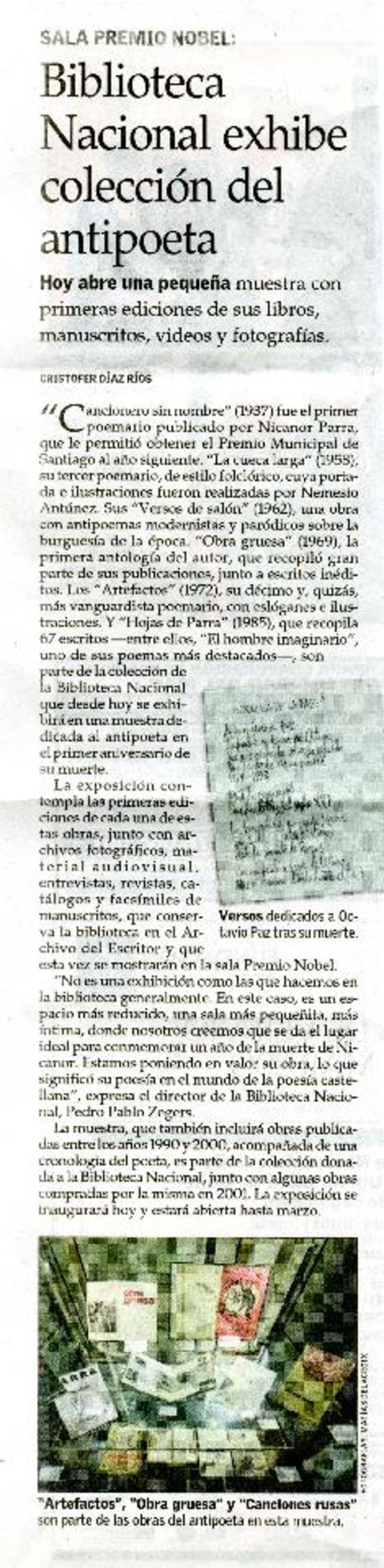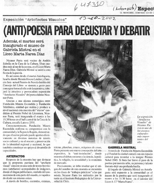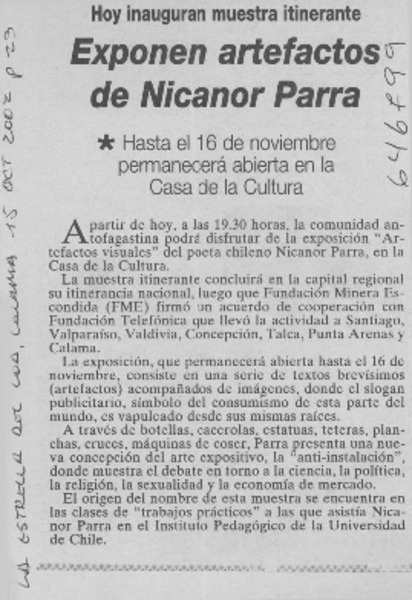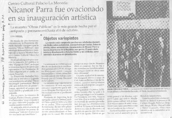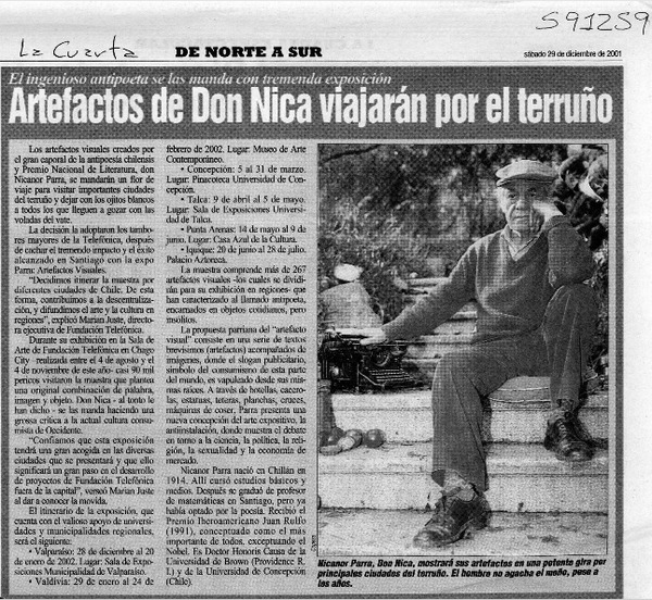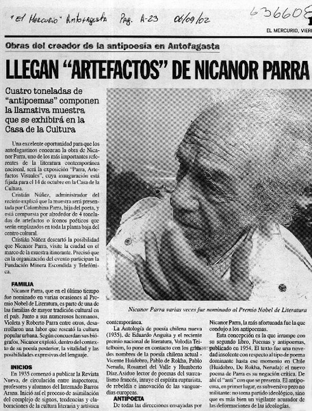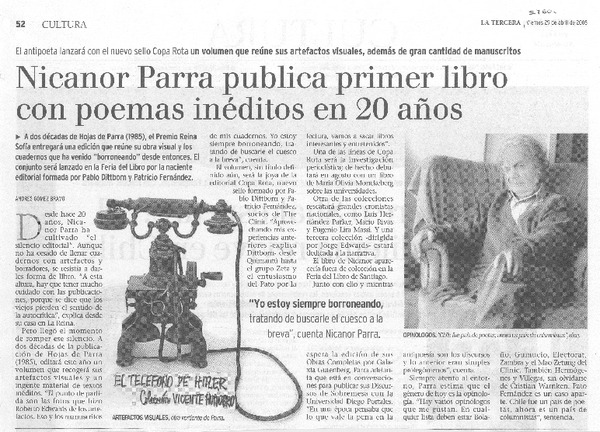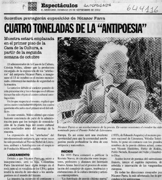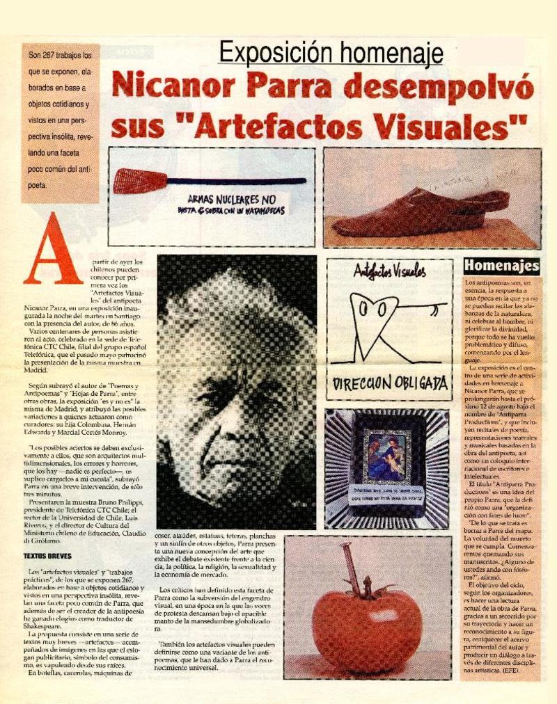 Anticipamos los polémicos artefactos de Nicanor Parra en el Centro Cultural Palacio de la Moneda [artículo].
