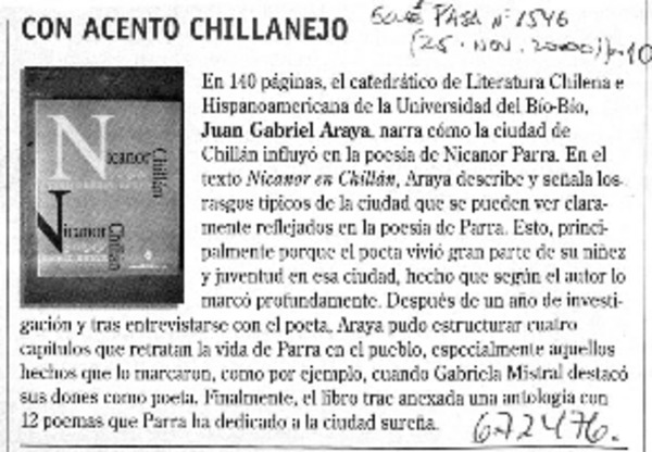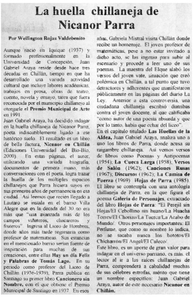 Autores chilenos - Nicanor en Chillán - Araya G., Juan Gabriel - Parra, Nicanor