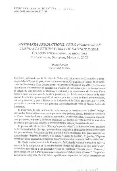 Autores chilenos - Parra, Nicanor - Antiparra productions
