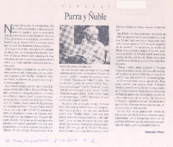 Un novedoso enfoque visual para el legado de don Nicanor. [artículo] Rodrigo Ortega