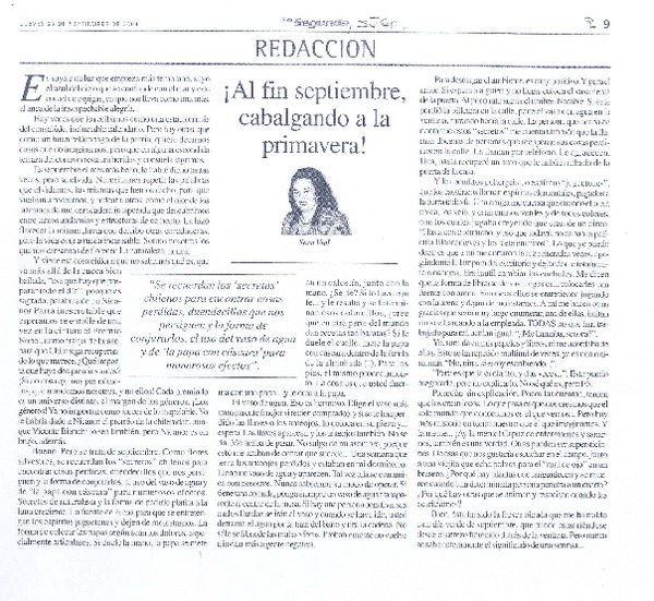 ¡Al fin septiembre, cabalgando a la primavera! [artículo] Sra Vial.