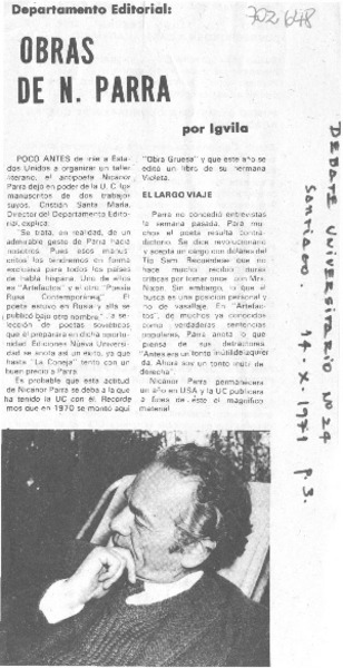 Autores chilenos - Parra, Nicanor - Obras públicas