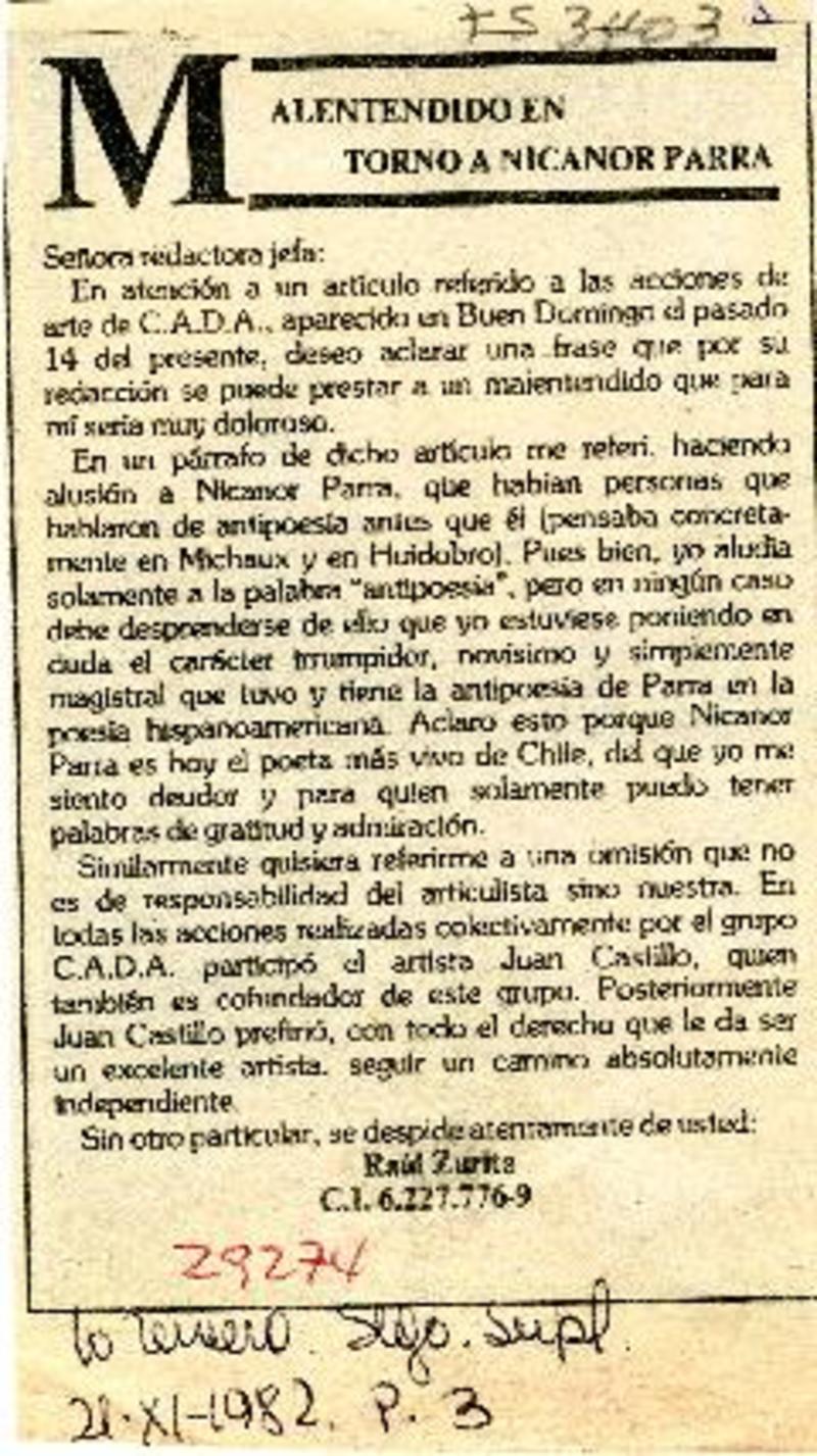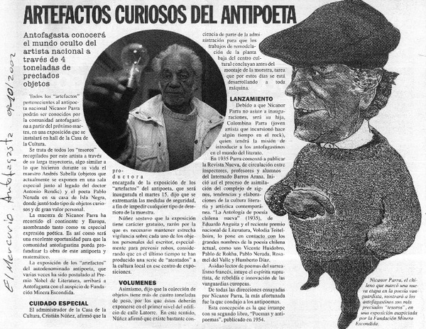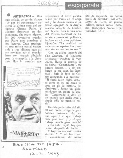 Autores chilenos - "Artefactos" - Parra, Nicanor