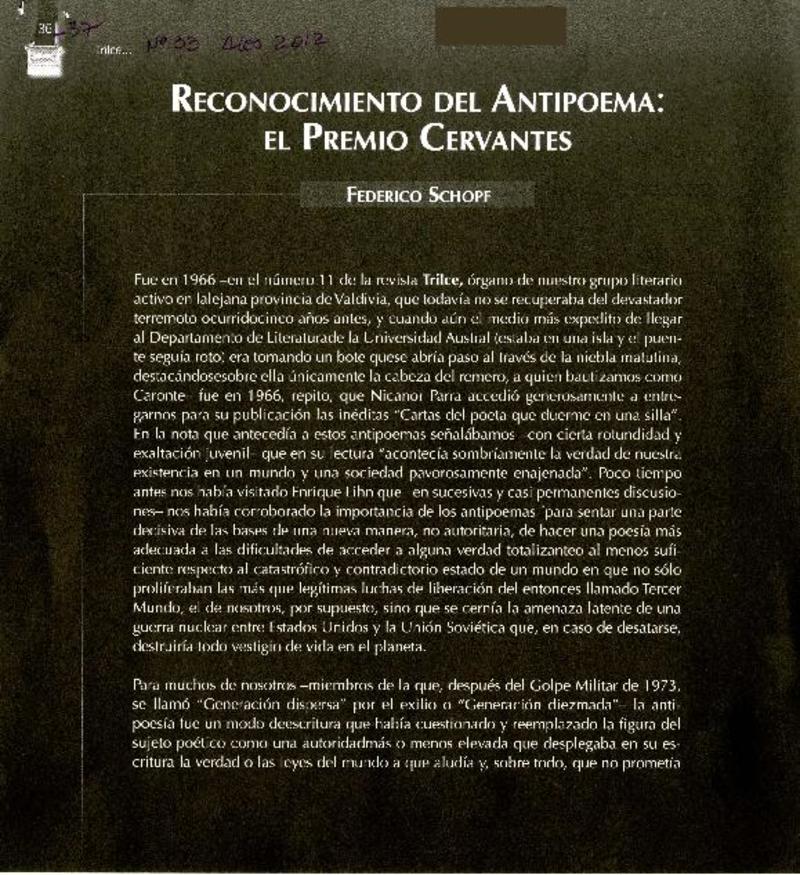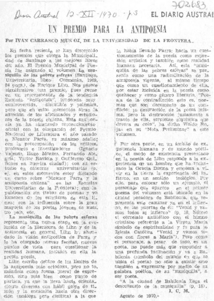 Un premio para la antipoesía [artículo] Iván Carrasco Muñoz.