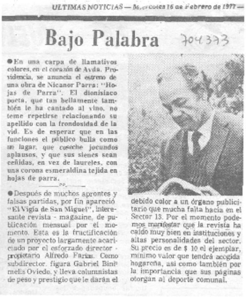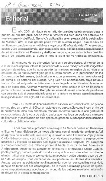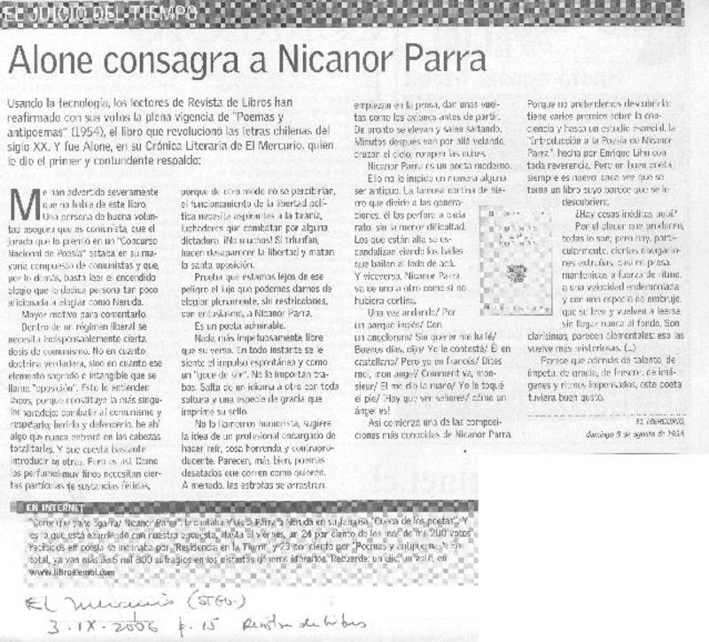Alone consagra a Nicanor Parra [artículo] Alone.