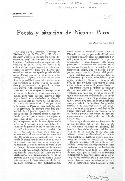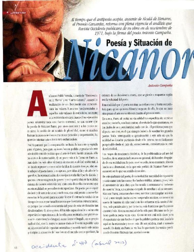 Parra, Nicanor - CAMPAÑA, ANTONIO - POESIA Y SITUACION DE NICANOR PARRA