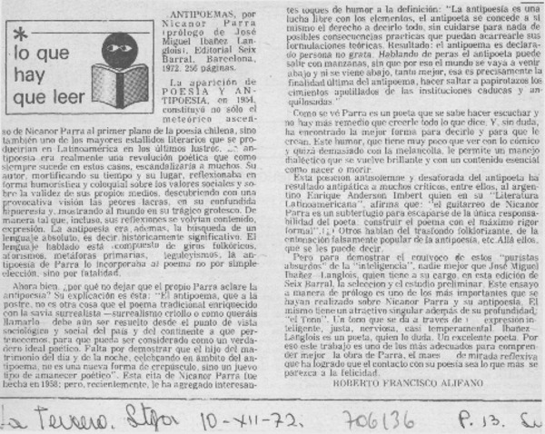 Antipoemas [artículo] Roberto Francisco Alifano.
