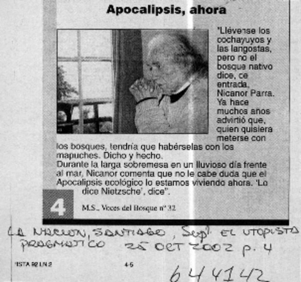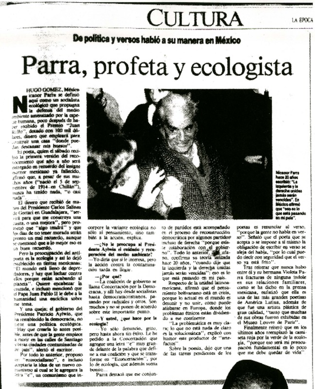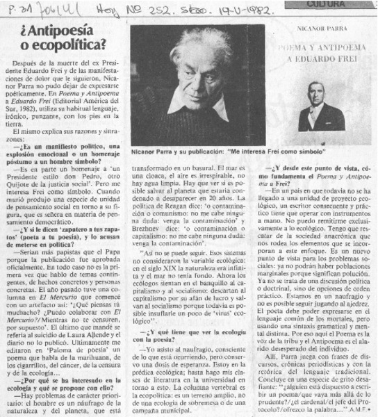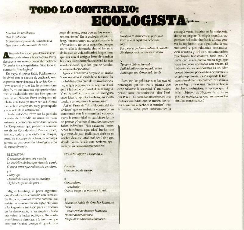 Antipoesía o ecopolítica? : [entrevista] [artículo] A. M. F.