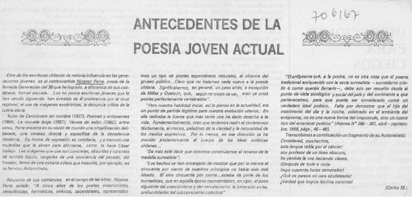 Antecedentes de la poesía joven actual [artículo] Carlos M.