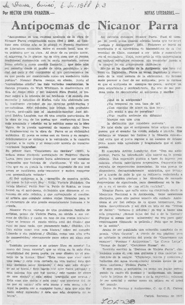 Antipoemas de Nicanor Parra [artículo] Héctor Leiva Oyarzún.