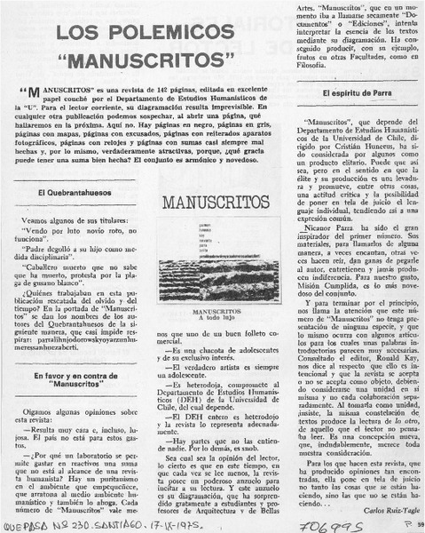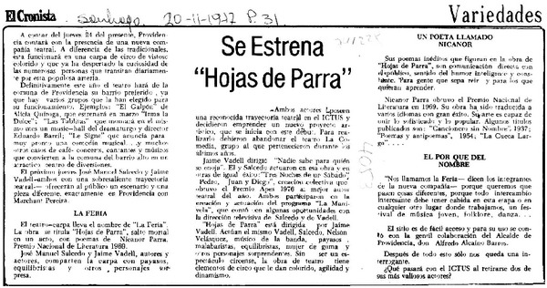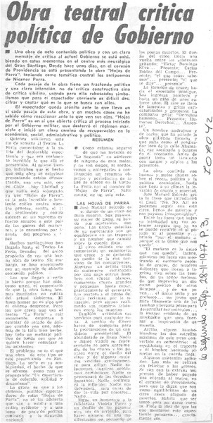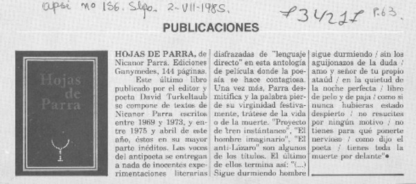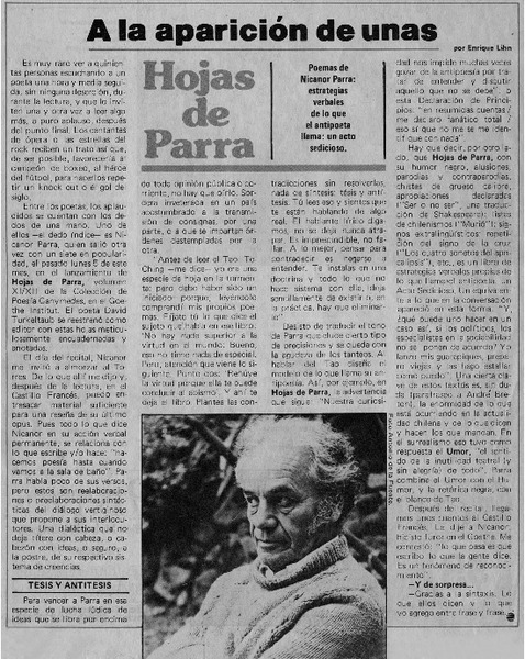 A la aparición de unas Hojas de parra [artículo] Enrique Lihn.