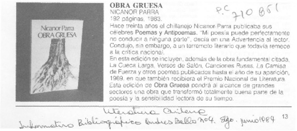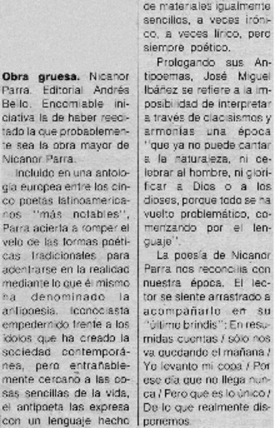 Autores chilenos - Parra, Nicanor - Obra gruesa