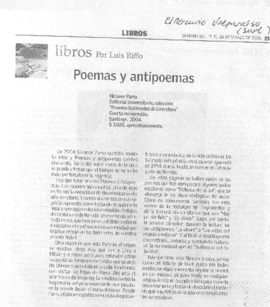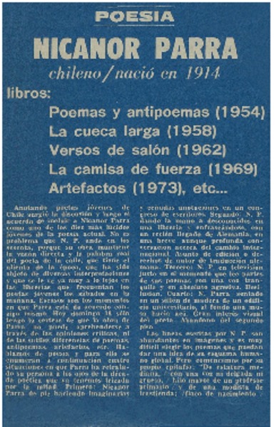 Autores chilenos - Parra, Nicanor - Poemas y antipoemas