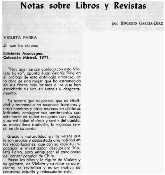 Una Parra que no envejece : [entrevista] [artículo] Hernán Miranda.