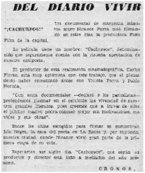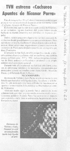 TVN estrena "Cachureo apuntes de Nicanor Parra" [artículo]