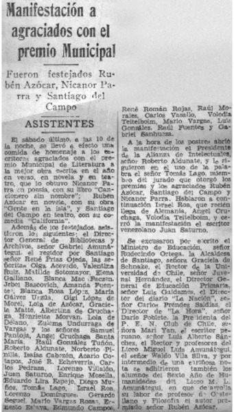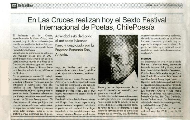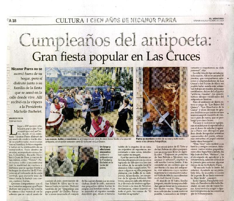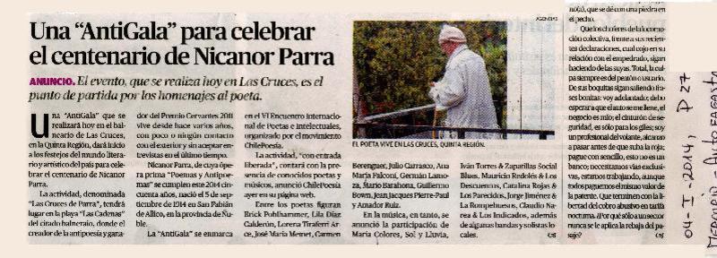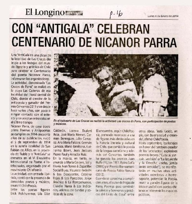 Antigala en Las Cruces en honor a Nicanor Parra [artículo]