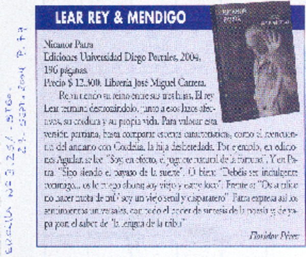 Autores chilenos - Parra, Nicanor - Shakespeare, William - King lear