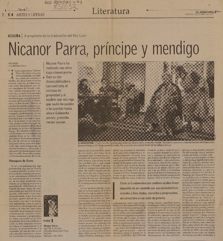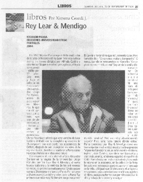 Autores chilenos - Parra, Nicanor - Autores ingleses - Shakespeare, William - Rey Lear