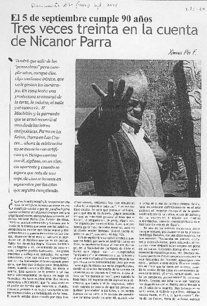 Tres veces treinta en la cuenta de Nicanor Parra [artículo]Ximena Póo F.