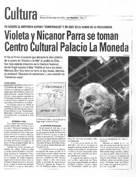 Violeta y Nicanor Parra se toman Centro Cultural Palacio La Moneda [artículo] Javier García.