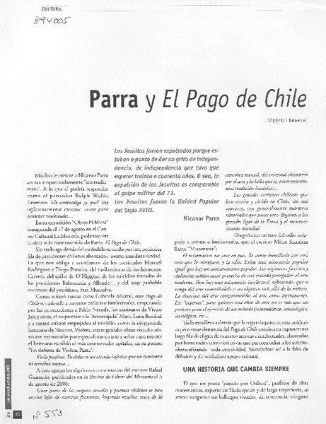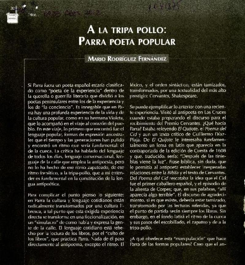 A la tripa pollo: Parra poeta popular [artículo] Mario Rodríguez Fernández